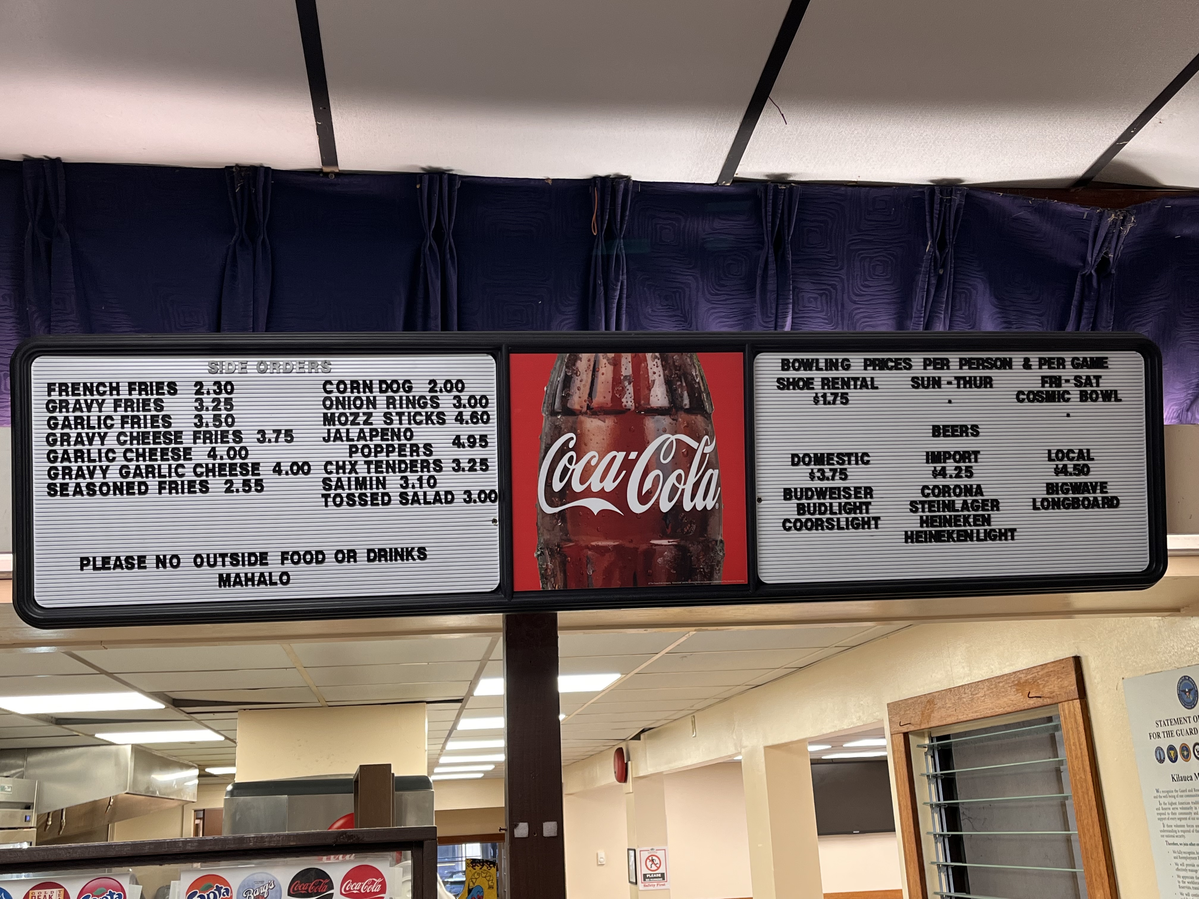As we were fortunate enough to have a military affiliate leading the group, we stayed at the Kilauea Military Center, a recreational area with cabins, an arcade, a shoppette, bowling alley, and restaurant/mess hall. There’s a bar too, but it happened to be closed.