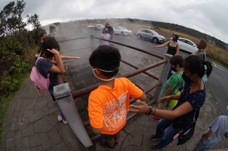Next we popped into Volcano House for its vantage point, a restaurant with a view of the crater and located right across the street from the visitor center.