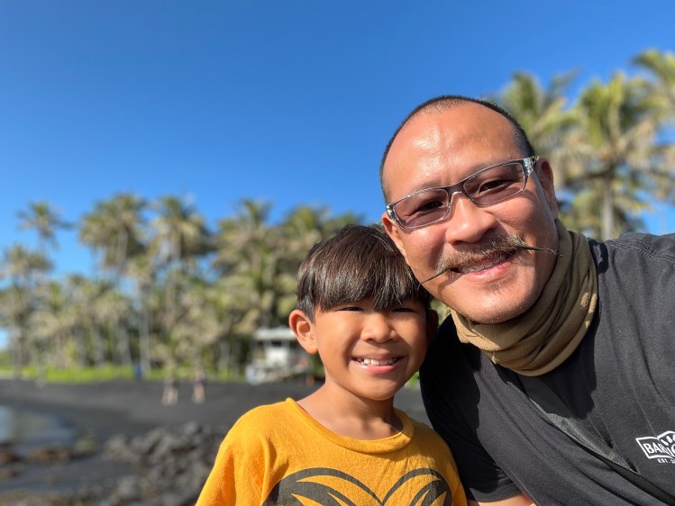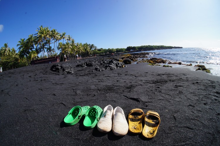 I don’t consider myself much of an ocean person, but when we arrived at Punaluu black sand beach and I began to soak in the combinatiom of black rock, green coconut trees, and blue ocean, I began to feel the dark blue ocean calling to me to jump in. Although I wasn’t planning on swimming, I’m glad I brought my trunks, because I might have jumped in with my bibadees and ended up on someones TikTok. I had to let its beauty envelop me.