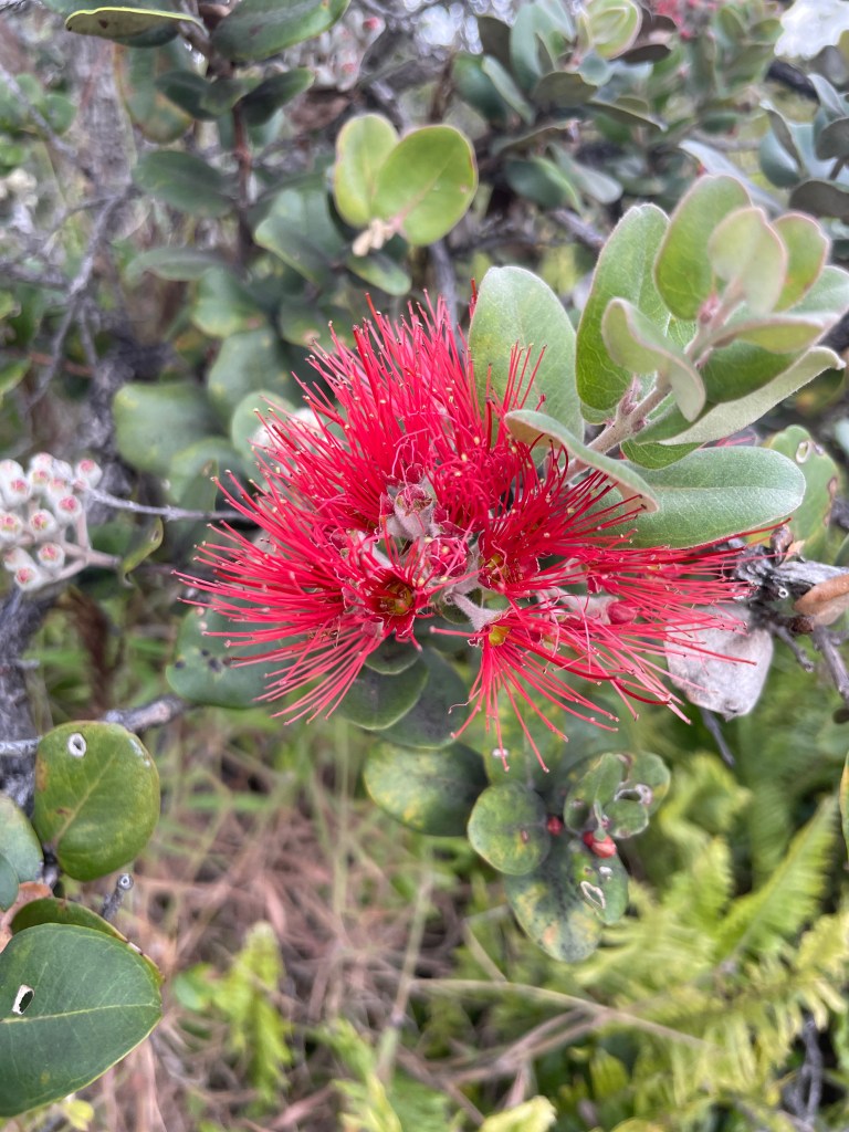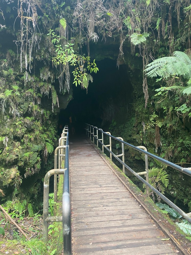 If you boil everything down, one-if not the main reason to visit the Big Island is to catch a glimpse of the volcano, an island in the making! With rain predicted at 70-100% for our first evening, we waited until dark with rain jackets, snacks and high hopes of seeing how the lava flow had changed since the 2018 eruptions. After unsucessfully venturing northwest along the crater to 2 different areas and only seeing clouds with not even a red glow to hint at the presence of lava, we went back southward to the place the ranger at the visitor center recommended, which was located down old Crater Rim Drive — Keanakakoi overlook. We achieved success after a wet walk on a paved road to a lookout point lower in elevation than we were earlier, and below the cloud line it seemed.