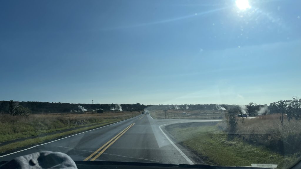At different points along the rim of the crater we saw steam vents and the crater from different angles. No lava, but you could see the smoke wafting upwards in the mostly windless climate.