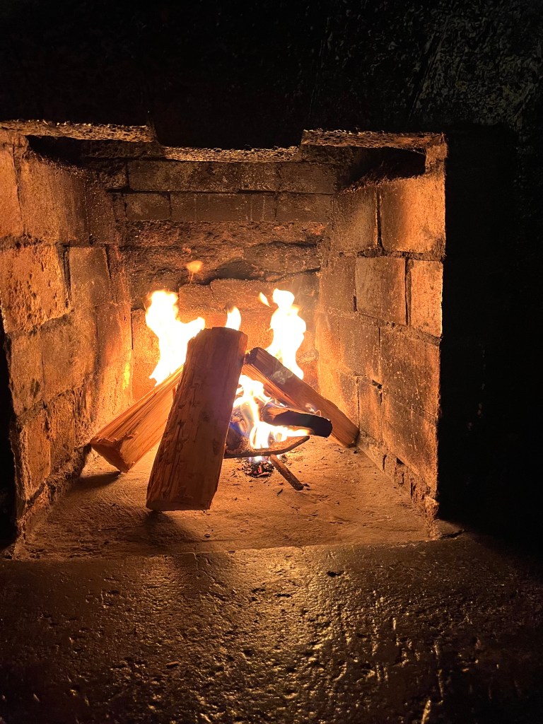 …and relax. Day one was pau. Everyone was pooped and went to crash out. I got relegated to the pull out sofa bed which was conveniently in the same room as the fireplace. (Wood, starter log and lighters available at the shoppette.) Gotta say it was a new experience having a live fire indoors.