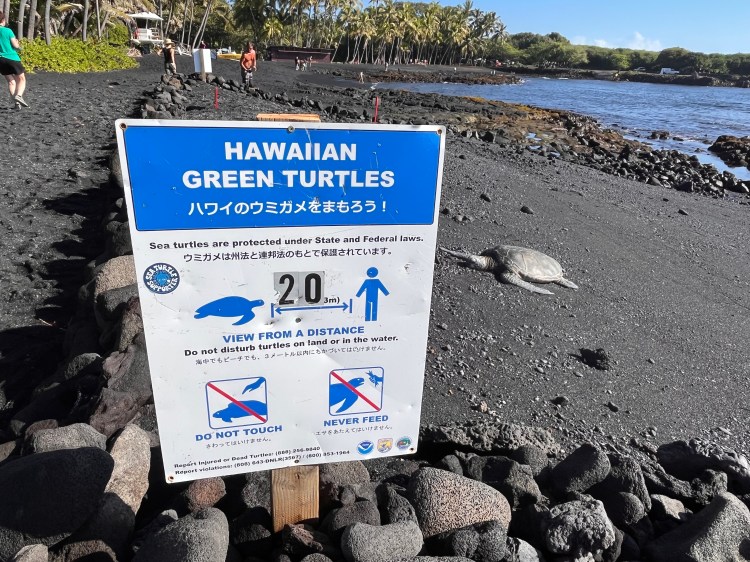 From shore, we could see multiple turtles in the water and there was a spot where lifeguards had built up a rock wall around where the turtles like to hang out at to keep people at bay.