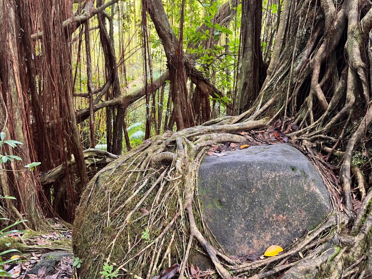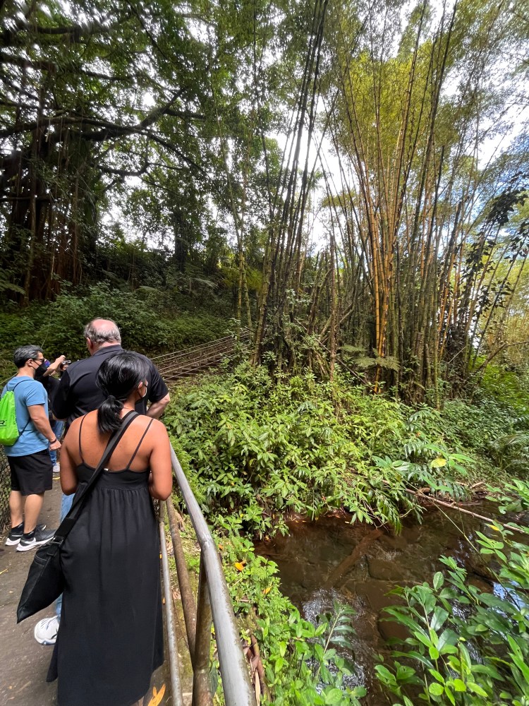 Coming from Kilauea, this place was just past Hilo town and up the mountain. The foliage was amazing with huge bamboo, towering ferns, and mountain streams. You could see the fresh water prawns with their long claws hanging out in the clear fresh water. No one else was interested in the prawns but me though. Their loss!