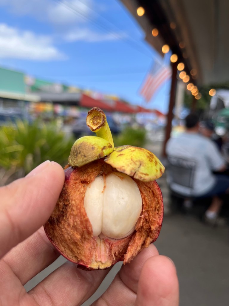 On the way to the Imi Loa Center located next to the University, we split from the group and stopped off at the Hilo farmers market for some fruit and poke bowls. Hudson wanted to try the Big Island lychee to see if it was better than Oahu’s. I told him most of the lychee on Oahu probably comes from the BI! Didn’t matter because it was the wrong season for lychee anyway. Still there was a great variety of fruits, including long an, durian, and a bunch others!