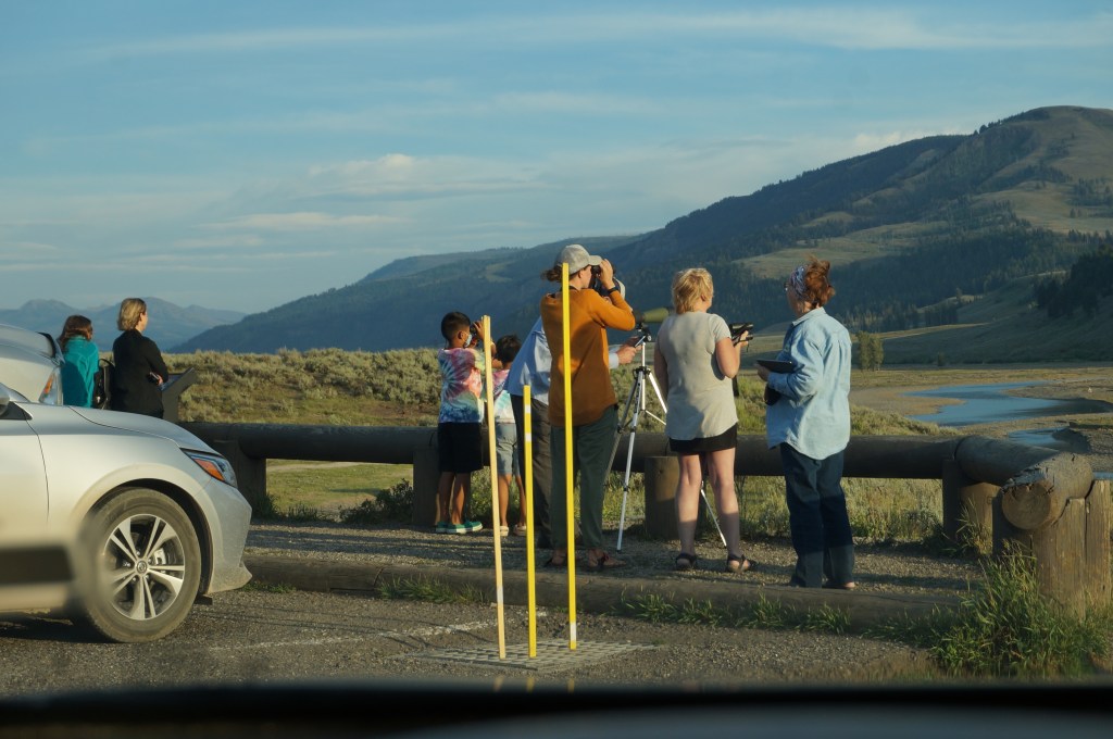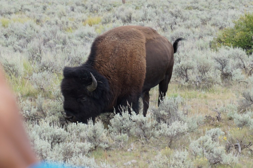 We were hoping to see a bear or wolf to round out the animals spotted so we hung around staring at an old carcass across the way. A regular at the park showed us where the Lamar pack den/home was located up on one of the mountainsides. He said that in the park are a wolf guy and also a bear guy who are local fanatic volunteers who practically live at the park. Apparently each pack has a name and an area that they roam around in. While in the park they are protected however once they leave they are targeted by hunters. The individual wolves have tracking collars and so the resident wolf man goes around with a radar-type device and can tell you which direction a particular pack is. In the end we didn’t have any luck in spotting wolves. The dude we talked to said that natural events like windy days or other conditions may cause the pack to stay put and that the area we were trying to spot them at typically has lots of bison. Only one was at that spot so maybe the stars weren’t aligning for us.