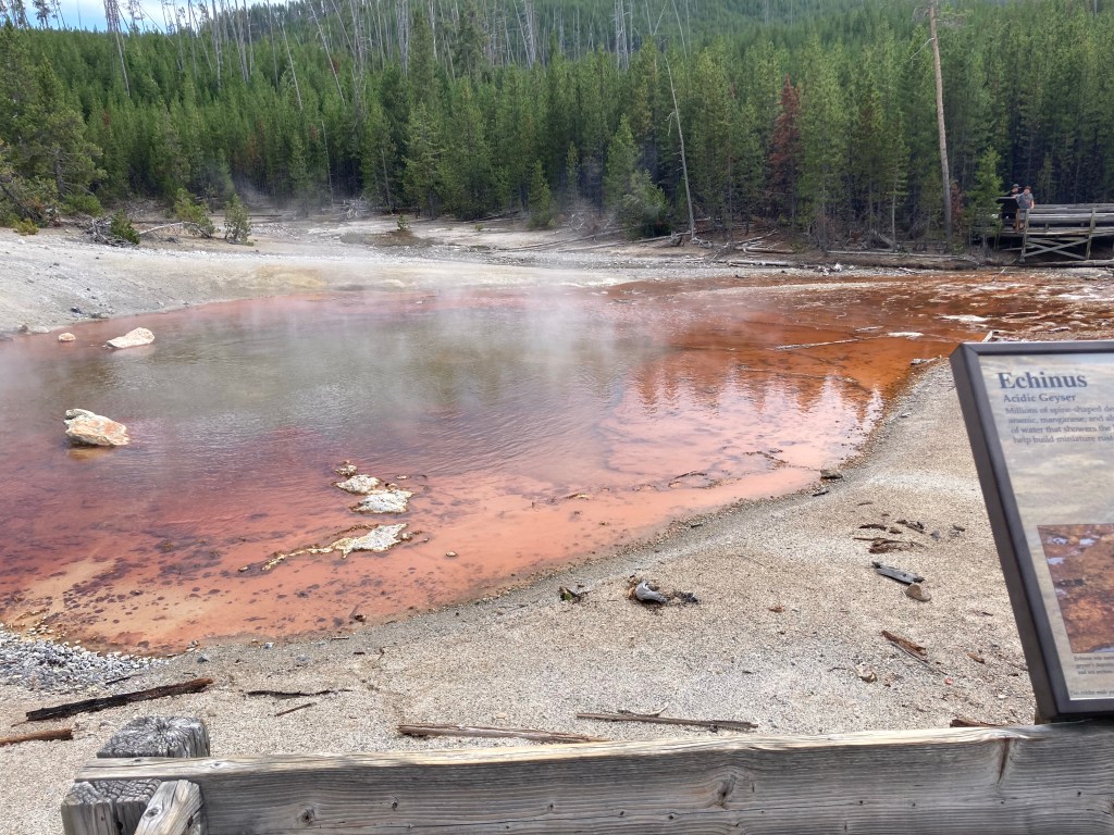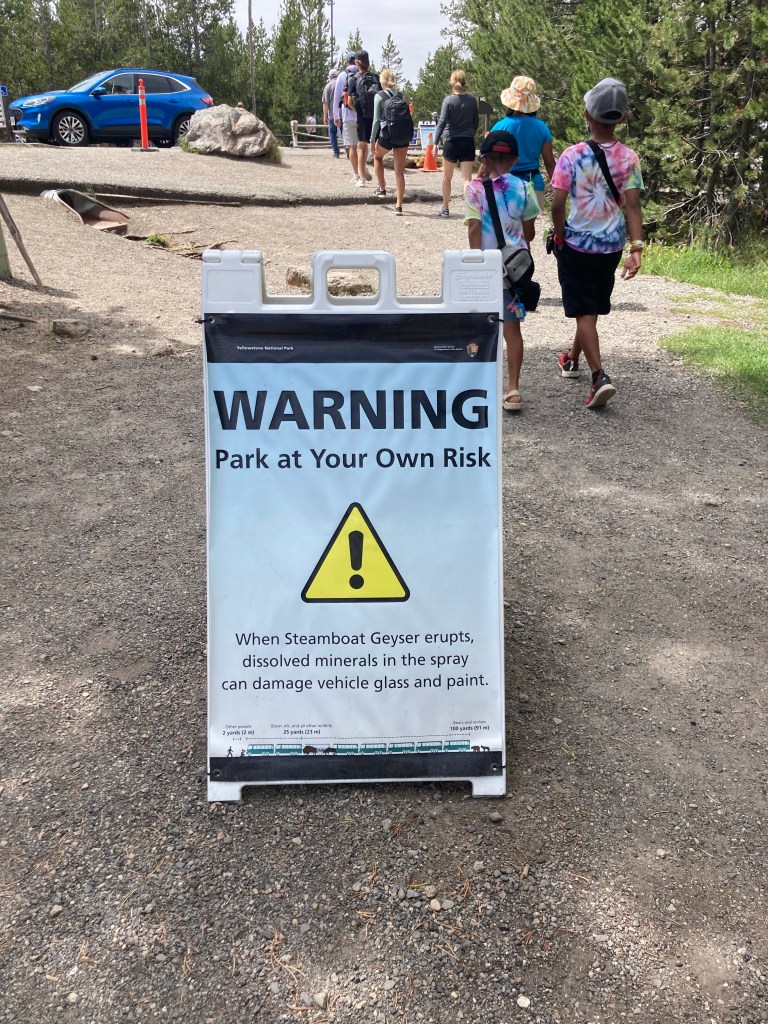 Steamboat Geyser eruptions are extremely sporadic ranging between 4 days and 5 decades in between events. We’re not getting our hopes up in seeing the largest (in volume) geyser erupt here in Yellowstone. It can go up to 300 feet high, three times as high as Old Faithful.