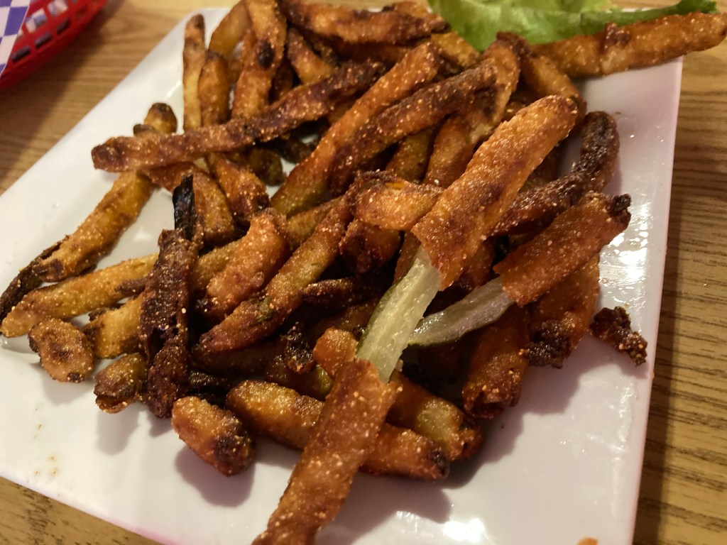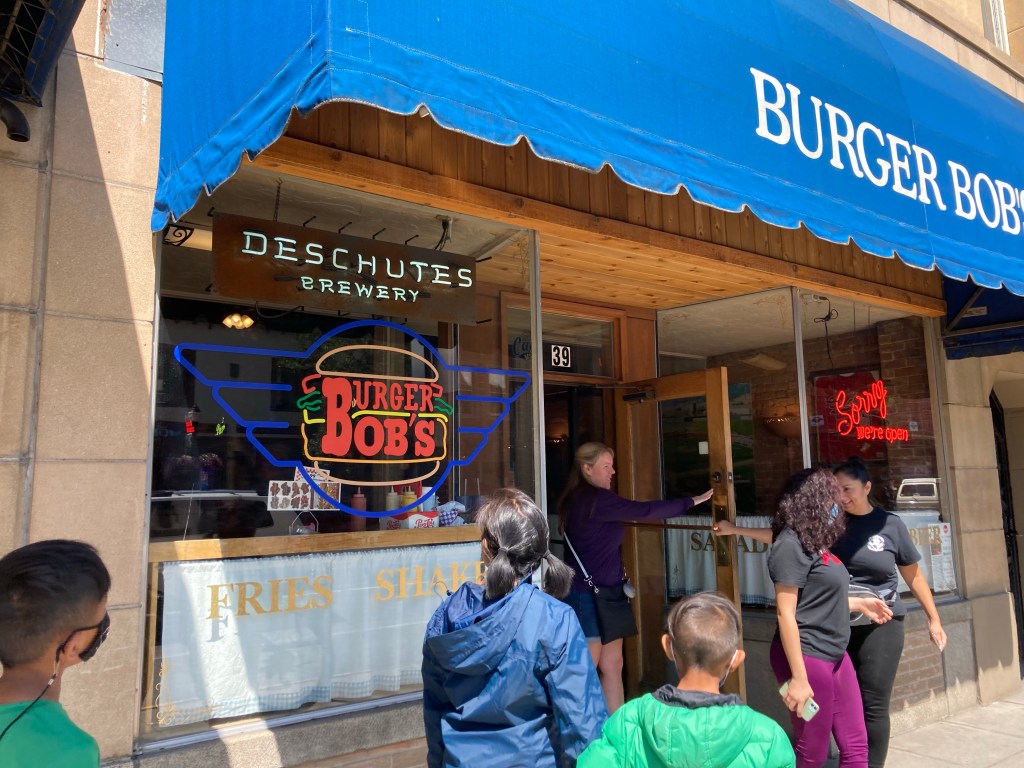 Two places were closed and so we ended up at Burger Bobs on main street. Why is it so hard to spend money? I thought we live in a capitalist society. Right, right, Covid.