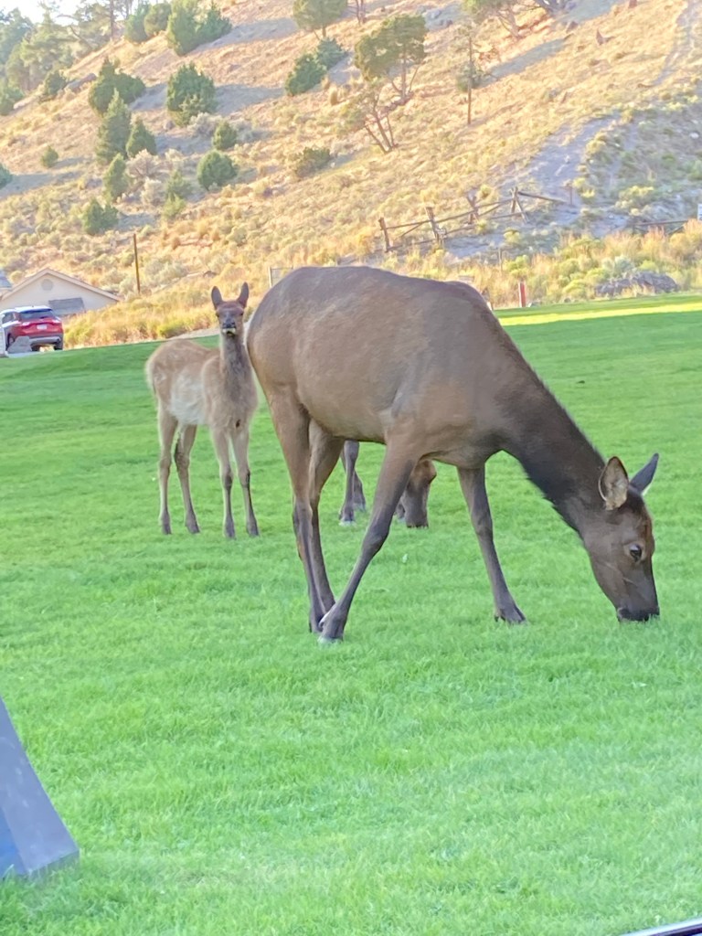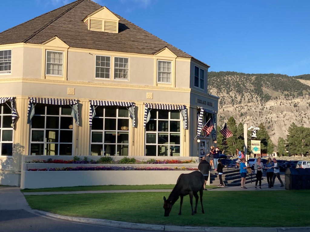 As soon as we entered the park, we saw elk at the north entrance, where there’s a restaurant, post office, and gas station. You can also see remnants of the military control from 1886-1918.