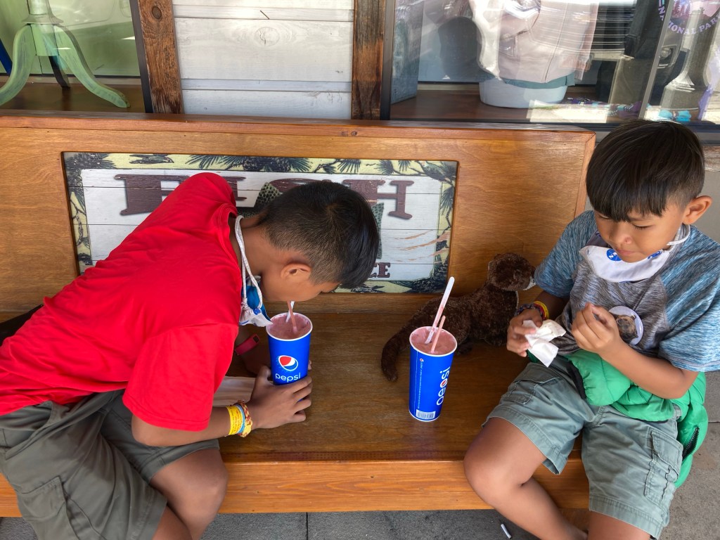 After the bear and wolf reserve, the kids had huckleberry floats to fuel up before heading back into the park one more time. Pax wanted to see Old Faithful one last time, and Hudson wanted to see Daisy Geyser erupt, which we caught just in time, making that 10 different geysers that we saw erupt during our trip.