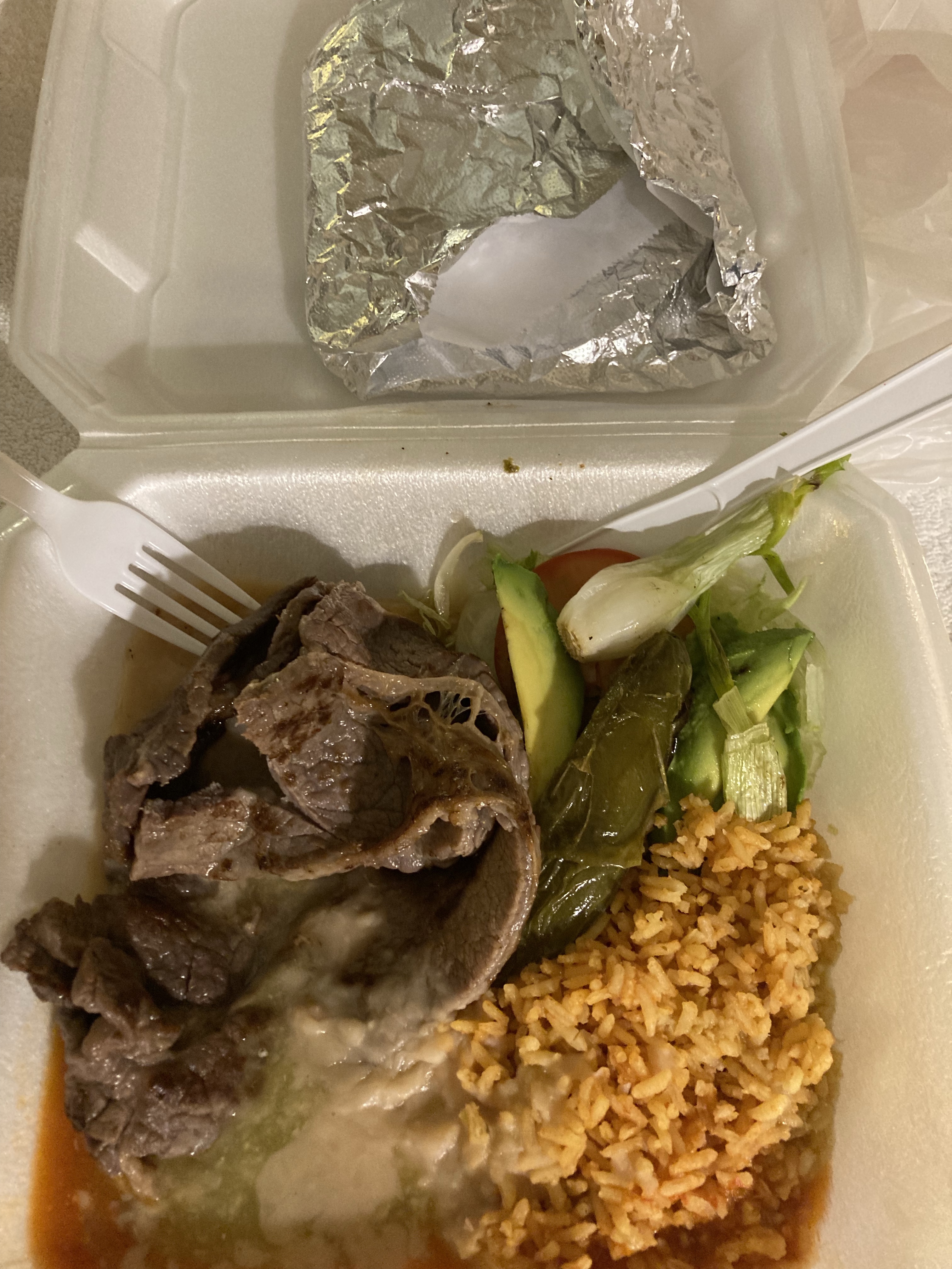 I kind of wish my carne asada (top left) was cut up. Cutting lean meat with a crappy plastic knife is not cool. The vegetables were interesting. There was a leek like onion and the jalapeno pepper made the top of my head sweat. We also had nachos and miscellaneous tacos but no head meat this time. Yum!