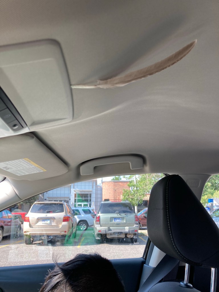 Earlier in the trip at a stop off that reminded me of Tantalus, I found that I suddenly had full cellular phone reception. While sitting in the car and thinking about my dependence on the internet, I remember looking up and seeing a single feather poked onto a fence, someone or some force placed it there. They placed it there for me. For me to find and take for guidance. Guidance in case our GPS stopped. In exchange we gave it an honored spot in the vehicle. We even returned the rental car like that hoping it might help guide its next renter into adventures similar to what we did. You’re welcome, traveler.