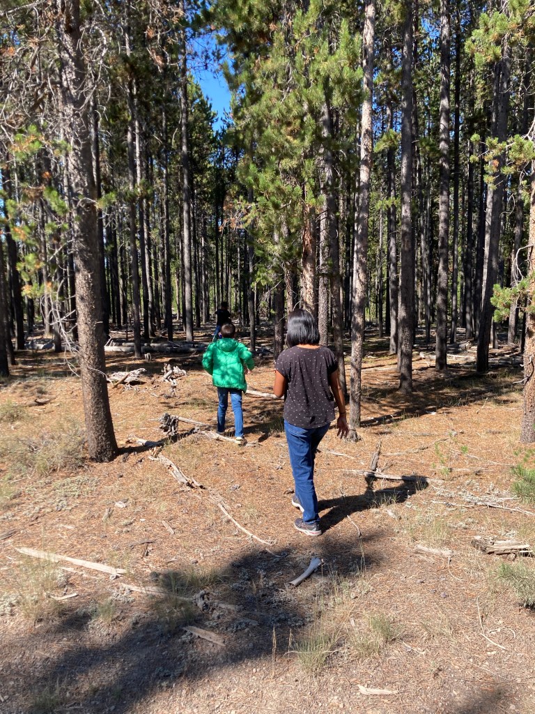 We started geocaching immediately. A few nights ago in West Yellowstone we tried to look for this one night at 10 or 11 pm. Although it looked like it was just a block away from homes on the map, when we got there I was worried I might get 1) mauled by a bear or 2) jacked by troublemakers. I don’t want to get all political up in here but that was the one time during the trip I wish I had a handgun. (Assuming I knew how to handle one, that is.) That first night we went there, the GPS showed it being on a “jeep road” and like I said it was only a block away from civilization. It was a rutted out dirt road with a few wide puddles I didn’t want to get stuck in. That night it was the kind of road that evoked a movie-like fear. When we got out of the car and the interior lights went out, it was pitch friggin black. For a second it was amazing. I could see a strip of star-covered sky in the open area above the road not covered by pine trees. Then I worried about dying again and so we dug out. What was weird was that the speed limit sign on that road said 45 mph for snowmobiles. In our car I couldn’t drive faster than 10.