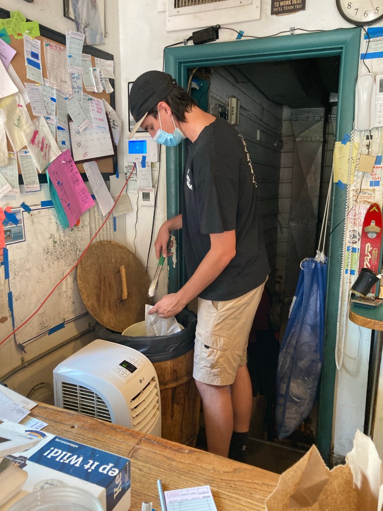 I got a few pickes to go in a paper bag. Pickle Barrel ended up haunting our journey with pickle juice. The sandwiches came in a paper bag, and between the veggies and sauce and bag of pickles, everything in my backpack ended up smelling like pickle!