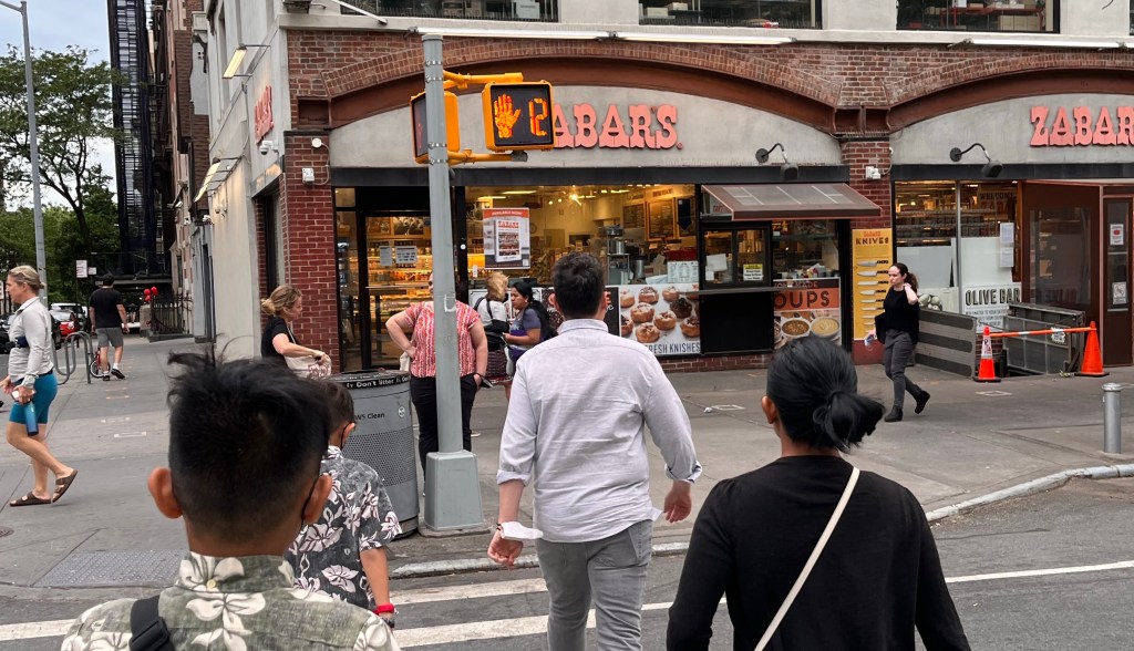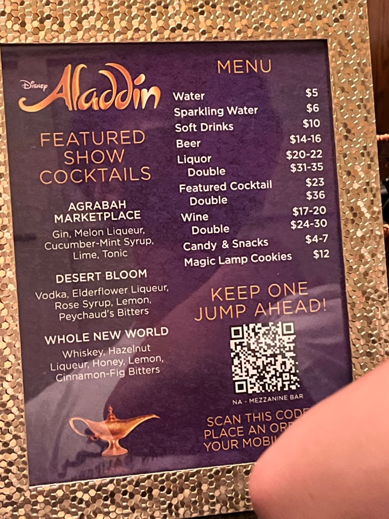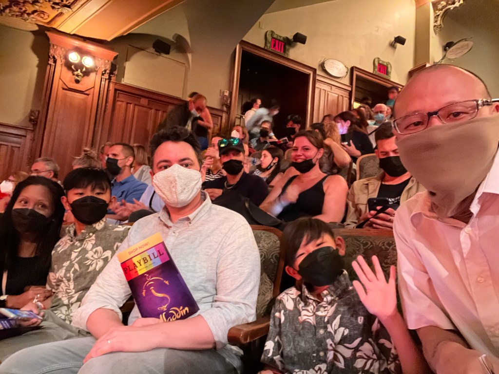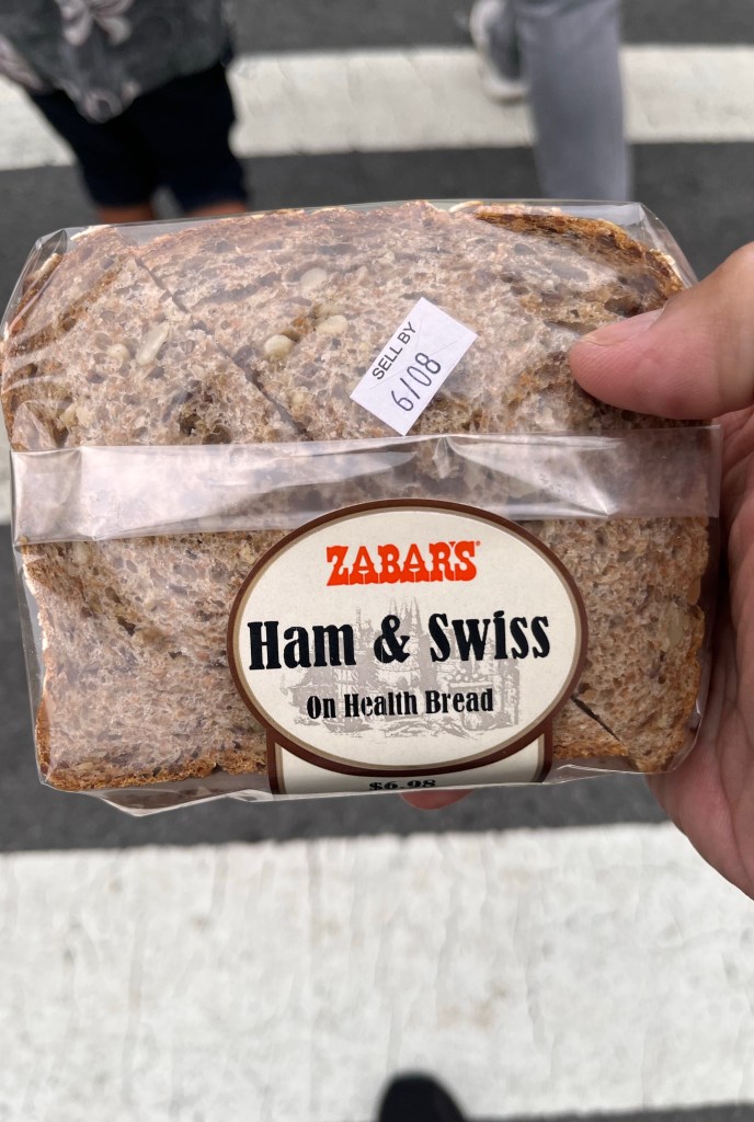 We Metroed back to Matt’s place and got ready to go see the Broadway production of “Aladdin.” Birthday girl’s choice. On the way out, I stopped for a sandwich outside of Matt’s place at a deli called Zabars, a Jewish deli known for their salmon.