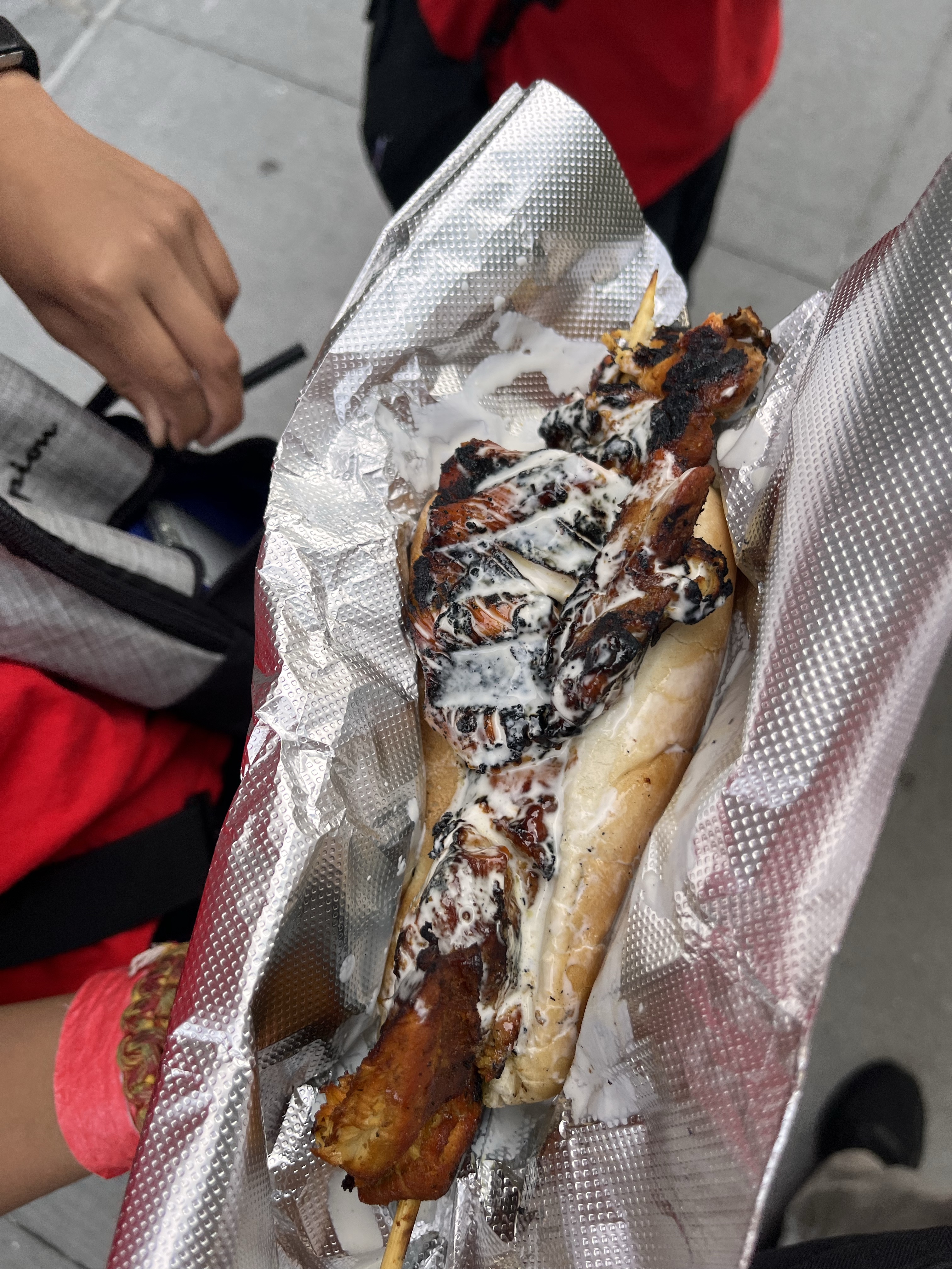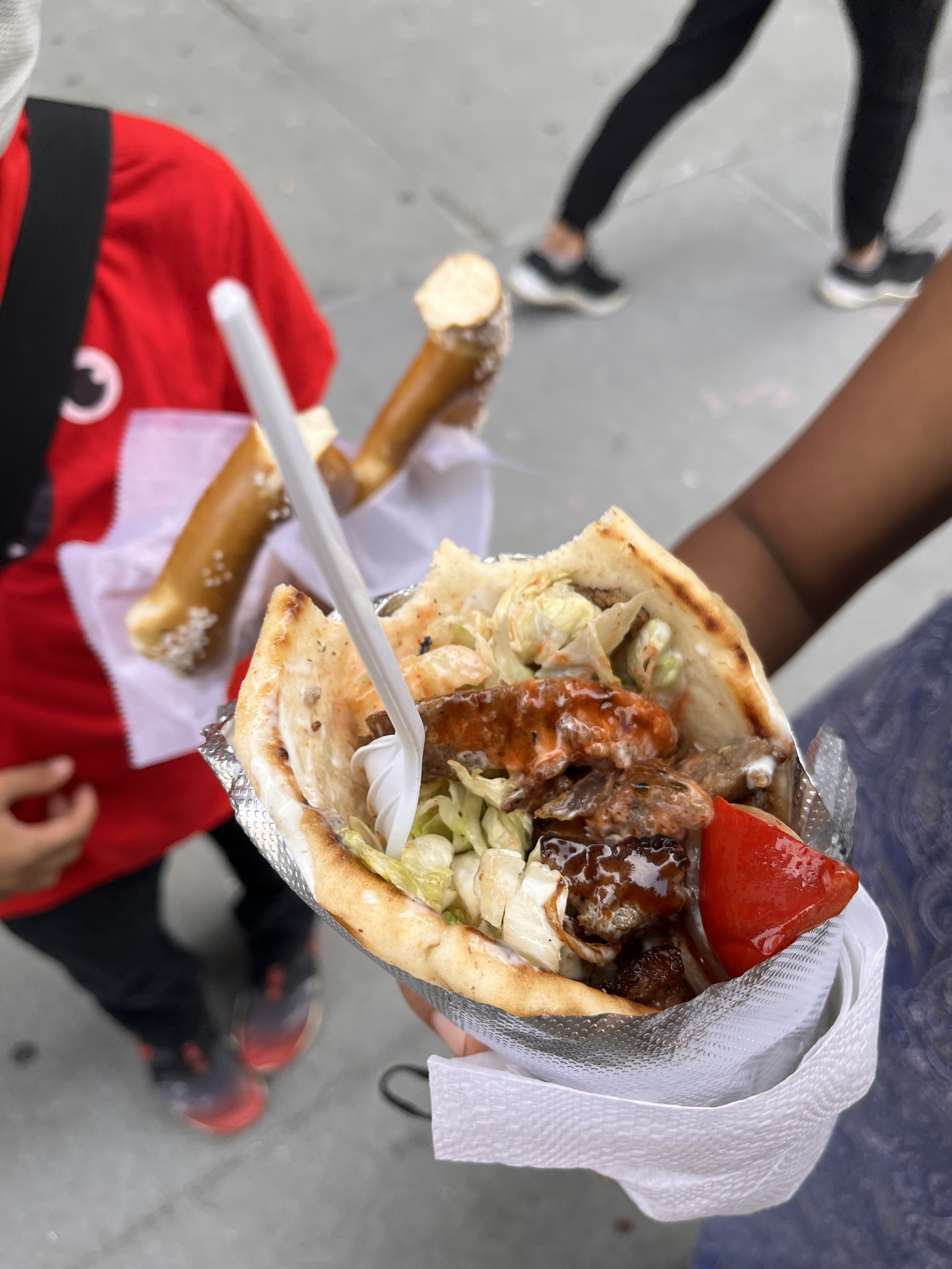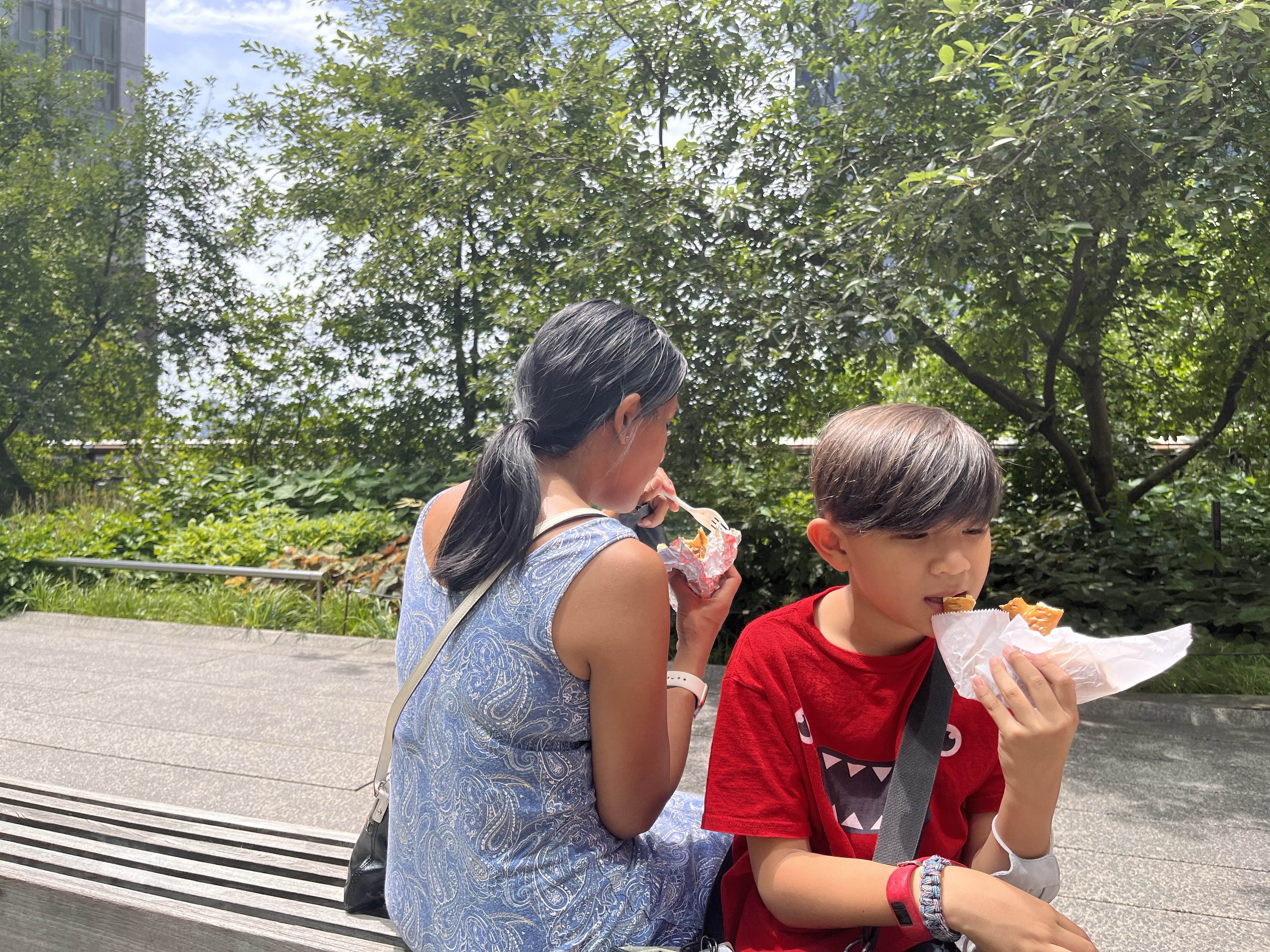 We grabbed some overpriced street gyro and chicken kebab in a bun and a pretzel for $23 bucks and headed to the recently developed exterior hangout space called Little Island. Can’t trust a place with no prices listed.