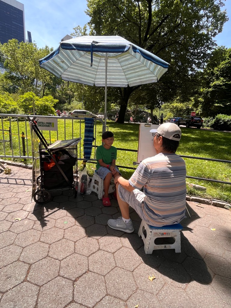 We walked southward through the park while stopping leisurely for caricatures and to look at places we recognized from our favorite Covid lockdown show on Apple TV, Central Park….