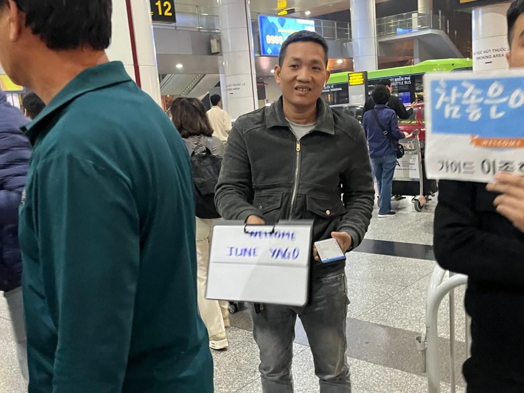 We have arrived! June researched that the immigration lines can be brutal so she prepared the paperwork ahead of time and we hustled through immigration full speed ahead. Our second blessing is that we are now waiting for our airport pickup driver at “column 10.” You heard me. No rip off taxi or navigating public transportation this time because our Ha Long bay package included airport pickup and drop off for us. Very nice!