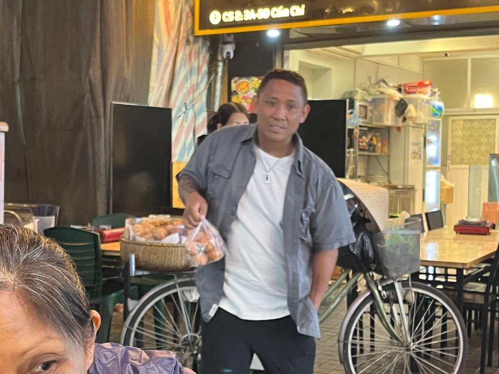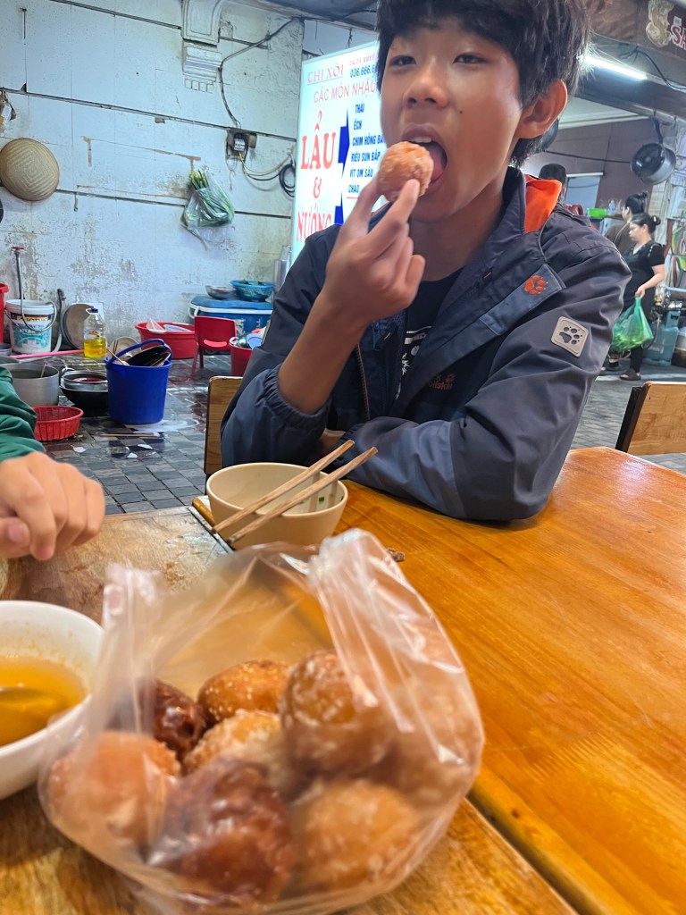 Gee I think it’s Tuesday but who cares? Hanoi is 17 hrs ahead of Hawaii. For dessert John John bought some fried donuts from a lady on a bike.