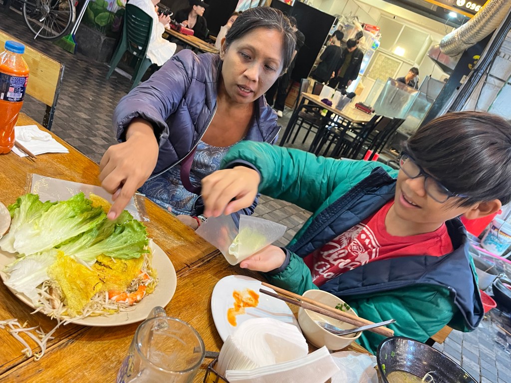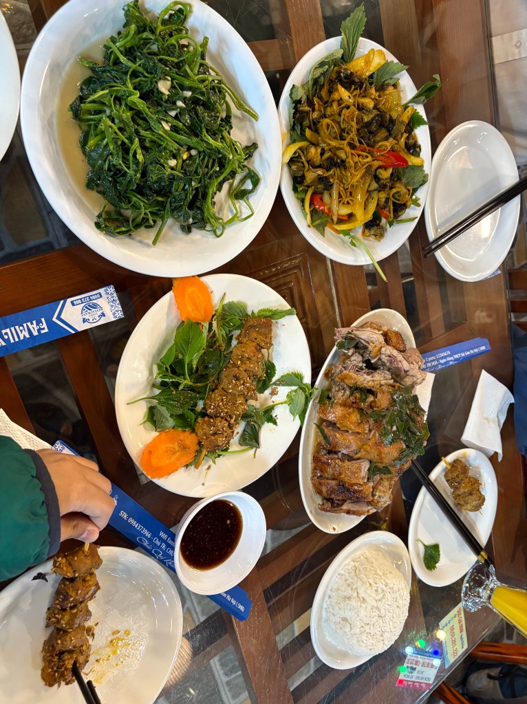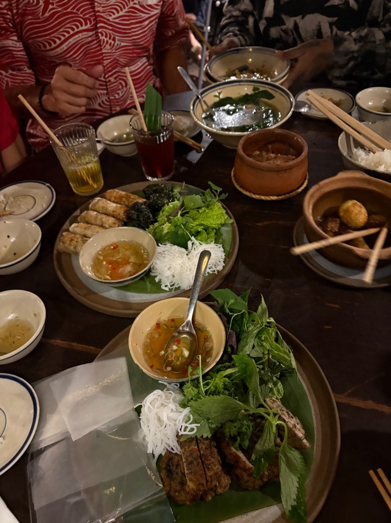 Net Hue for central Vietnamese style dinner tonight with John John. We don’t have enough time this trip to make it to that region so he made it a treat for us to try some of their specialities. Everything was delicious! But what hasn’t been on our trip?
