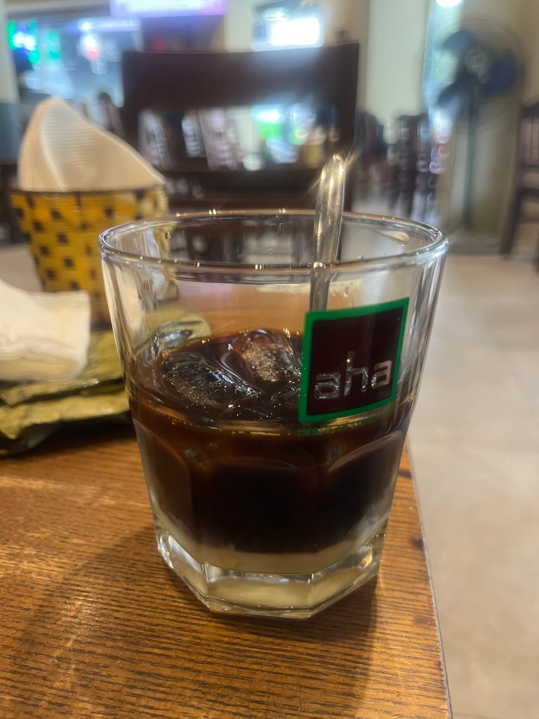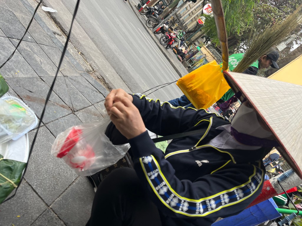 At the start we got a fried mochi rice $.4 and more coffee from AHA. Hanoi has great coffee. Thumbs up to the street food also.