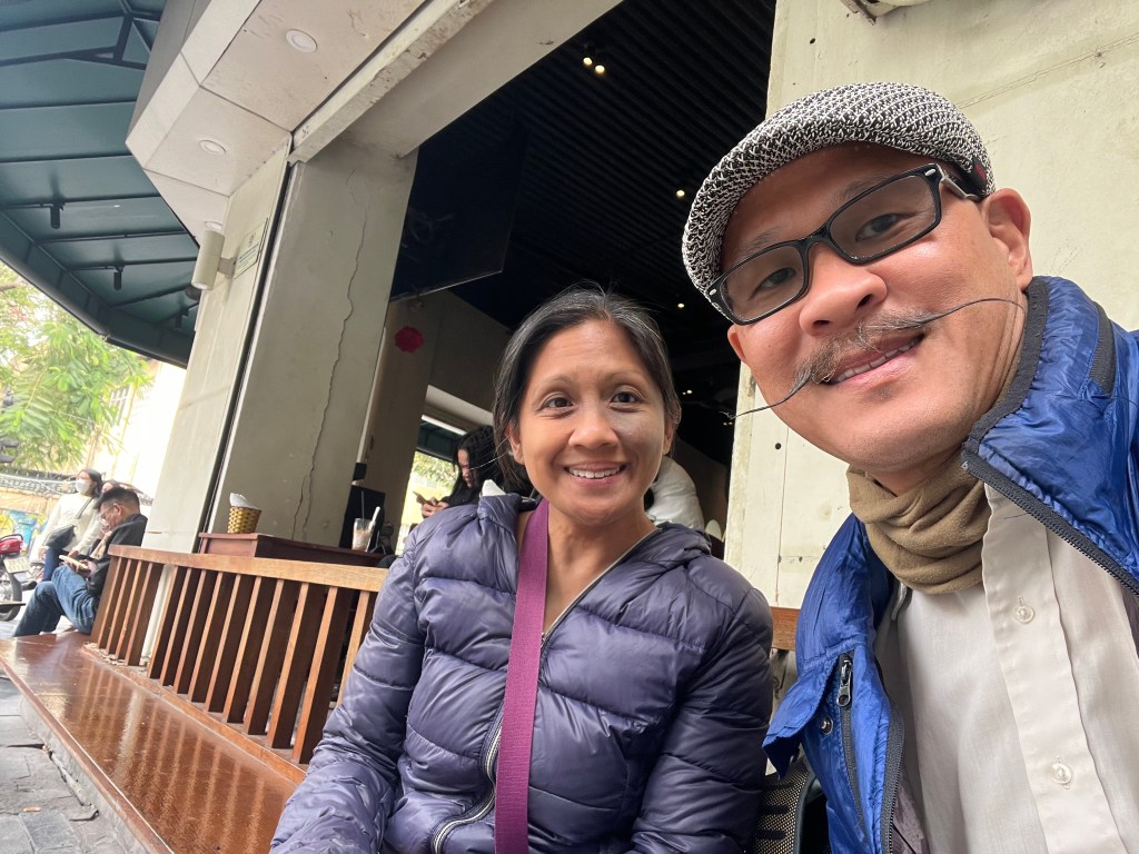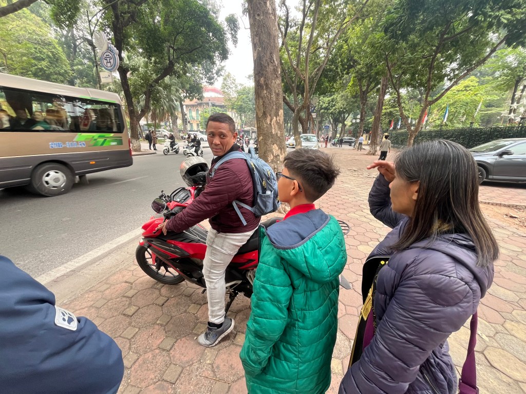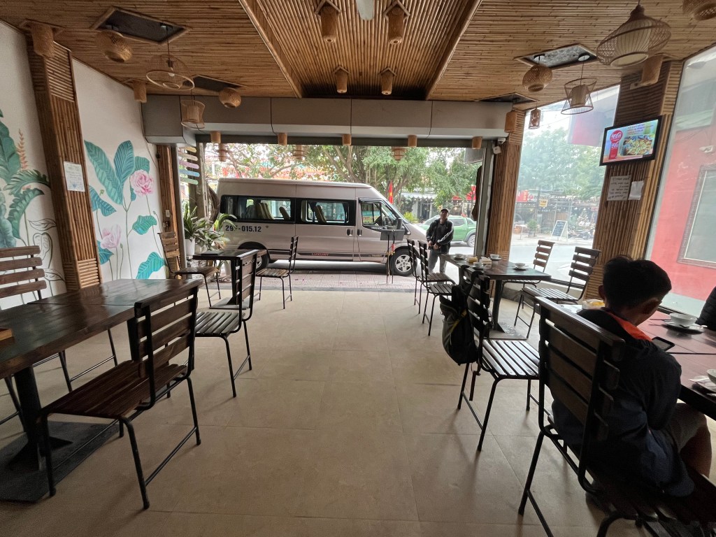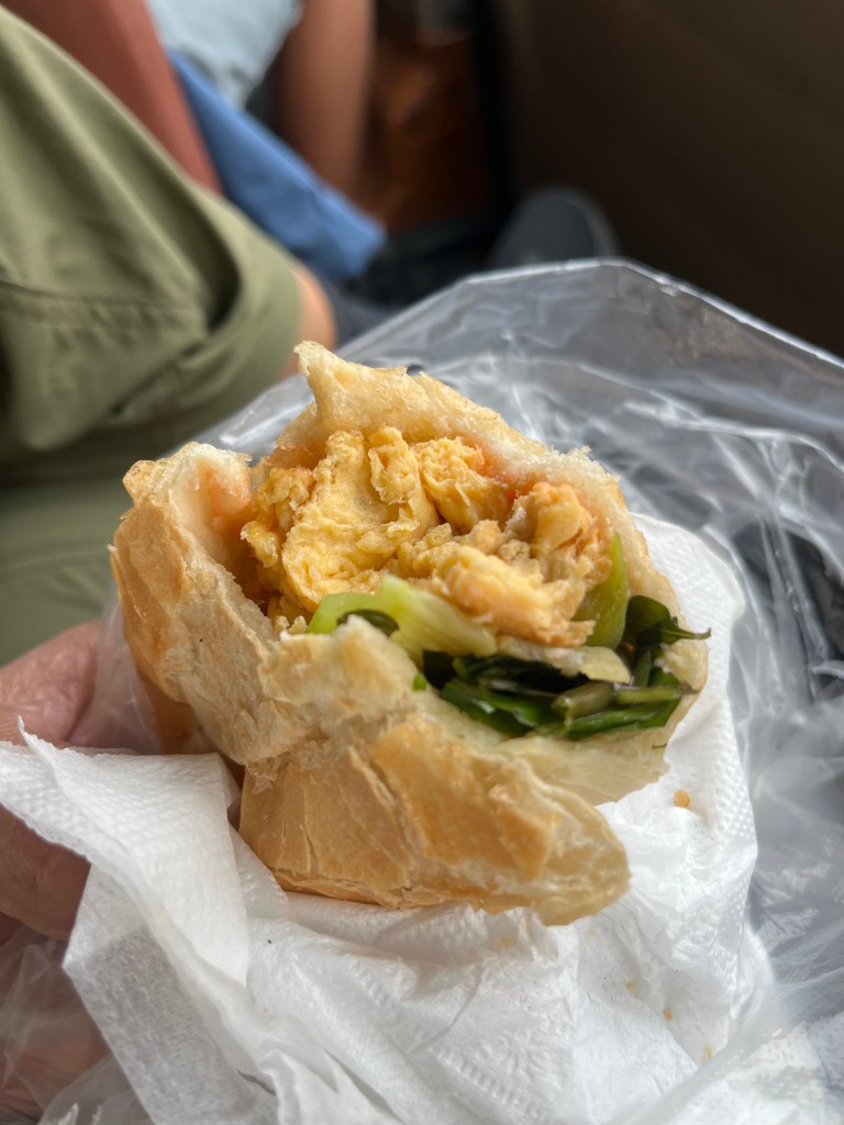 After checking out of the hotel I grabbed food to go-an egg banh mi for 80 cents, a fried mochi rice thing for 60 cents and a coffee to go $1.40 and we met up with our driver Thanh and guide Duy (Peter) who are taking us to scenic Ninh Binh where we’ll spend the day and one overnight.