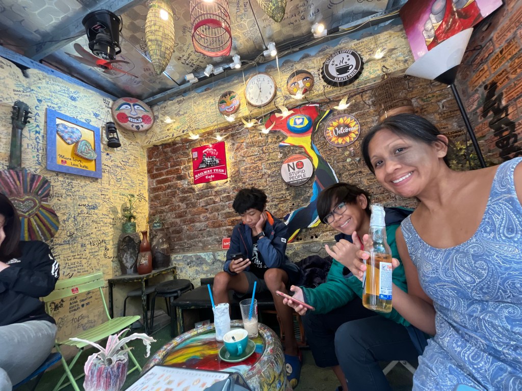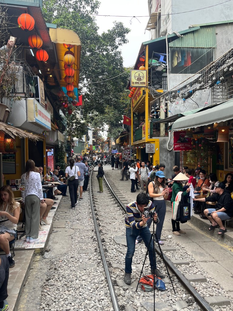 Eventually Hudson got up so we gathered up the whole gang and walked over to “train street” which has become famous over the past few years due to a social media explosion. It’s the place where cafes hug the train tracks and everyone sits a foot away from the tracks and scatter when the train rolls by.
