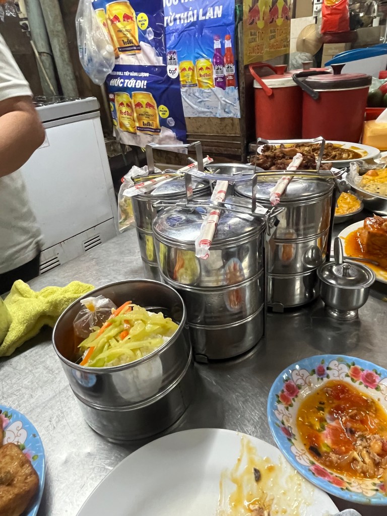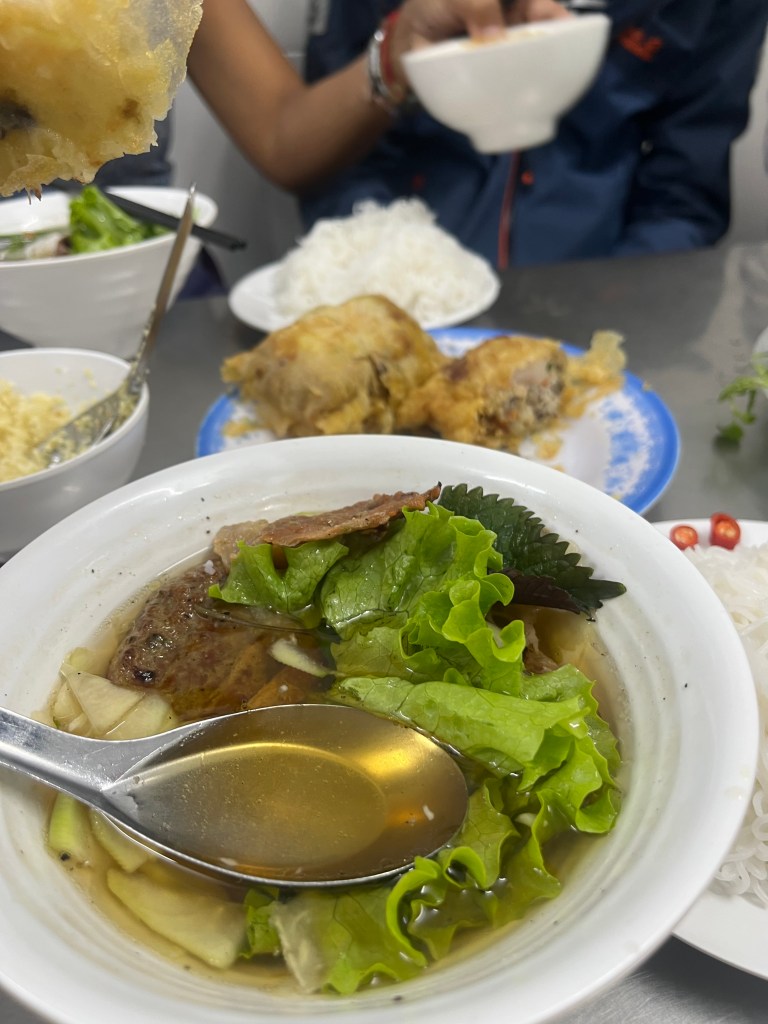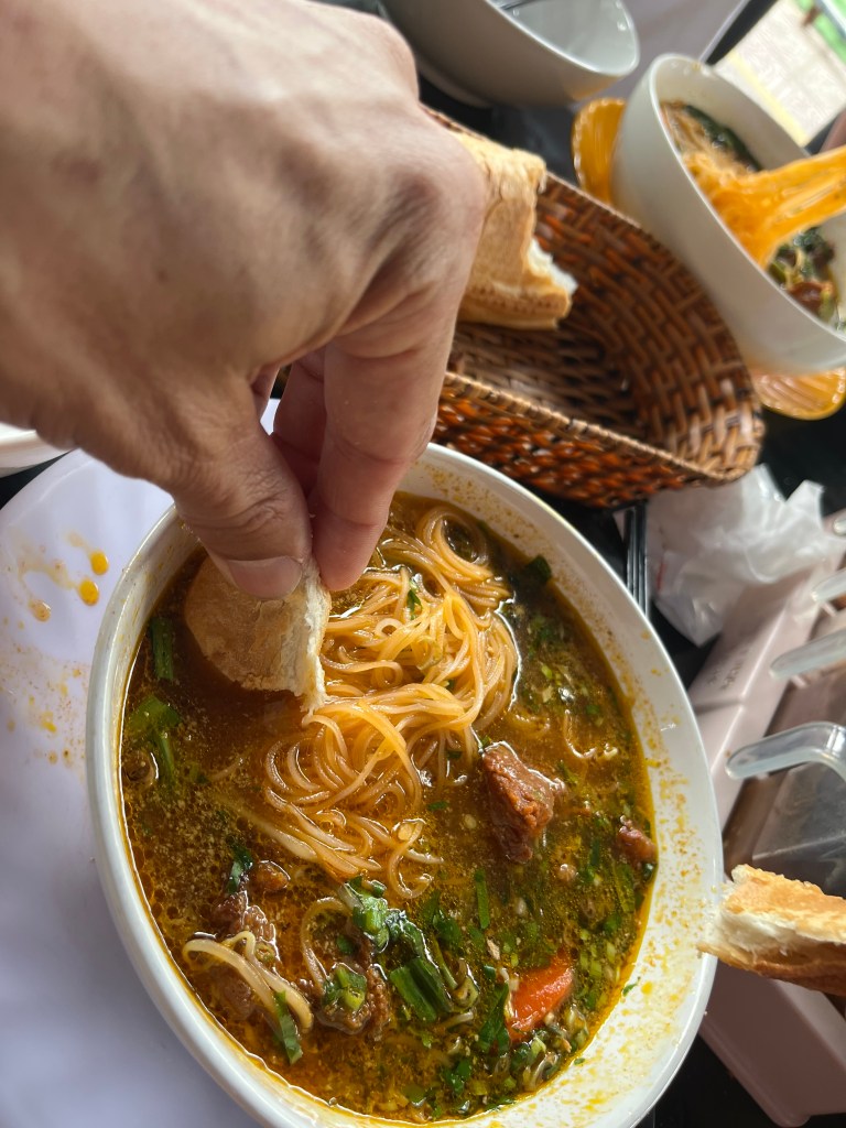 We’re on our way back across town to eat at The Lunch Lady. On the Grab ride over I read about the reviews of this Anthony Bourdain approved place. Half of them mentioned the word scam and since I don’t like arguing over discrepancies we went around the corner to another place that sold bun instead. We got beef stew with French bread for the first time. That place had the freshest bread I’ve had this trip. And crunchy and soft! I drown you in stew!