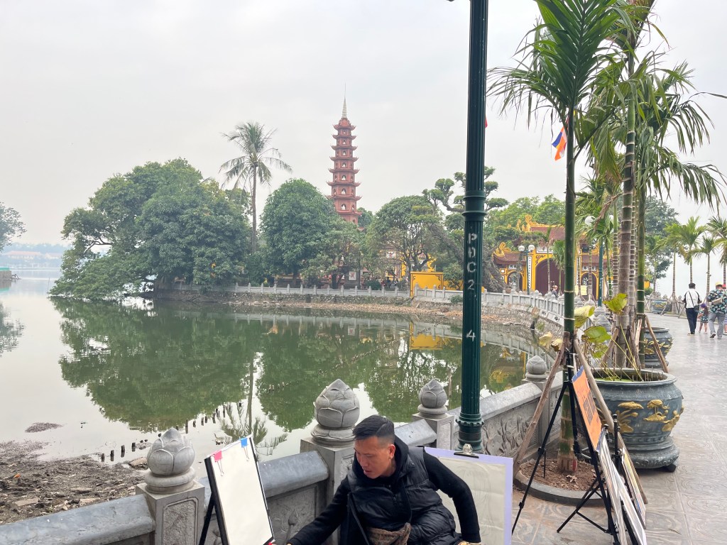 It doesn’t feel like Christmas. No Wham! on the radio or last minute-shopping ads bombarding my senses. Not many Christmas trees or decorations here either. We’re up early and ready to explore a bit before going to Christmas Mass. We’re going to head over to Truc Bach lake and then backtrack to church.