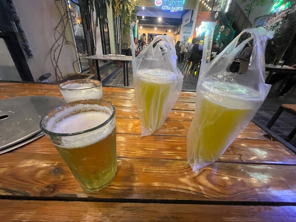 Wow, I’m a fast learner! lol After drinks on the sidewalk we found sugar cane juice for the boys and stopped by a beer garden for 50c beers.
