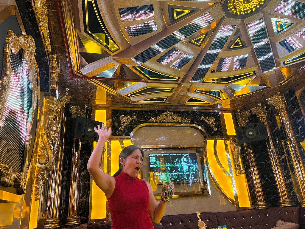 After dinner we decided to sing late into the night at a place Liberace would be proud of called Sunny Royal Karaoke. $10 /hr plus whatever drinks and snacks you order or consume. The tables were lined with water, soda, nuts and bottles of who knows what.
