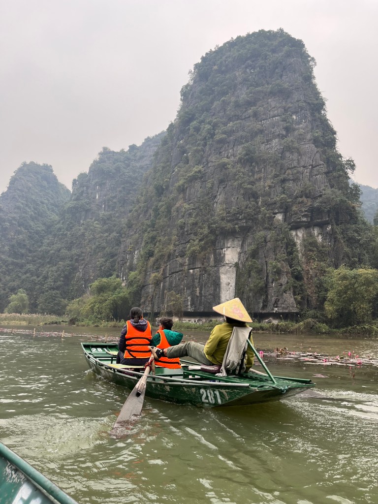 Ninh Binh-we’re hoping for a shift in scenery from crowded city scape to nature…imagine meandering down a river on a raft between rice paddies that are nestled in between rounded lime stone mountains. June booked a custom tour that started with a hotel pickup and takes us through Ninh Binh, HaLong Bay and ending with an airport drop off.