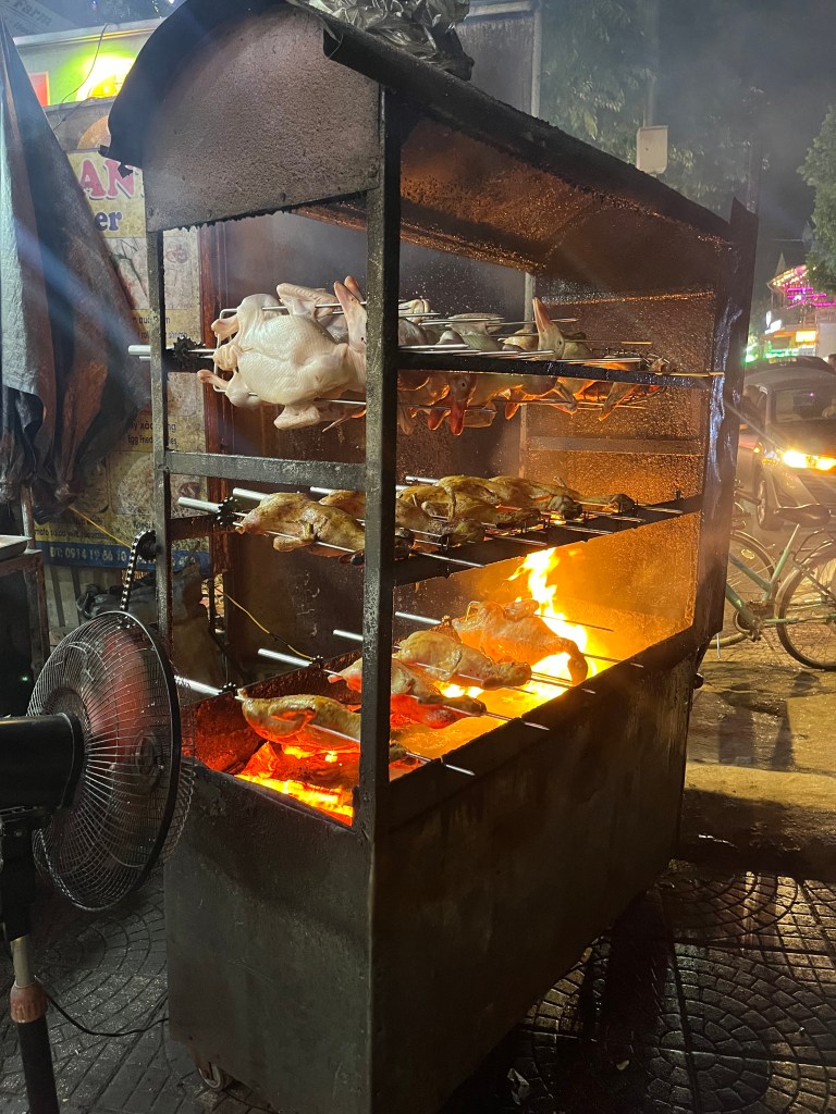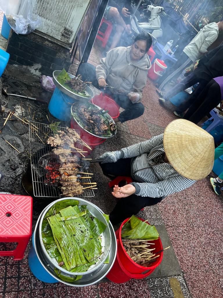 Everything is hazy and the air smells like a combination of familiar food smells and the char of burning rubbish with a hint of fragrant incense. I’m guessing Vietnam probably still does heavy industry production nearby this city based on the haze. Like China.