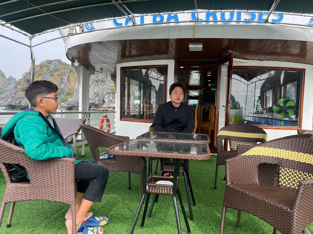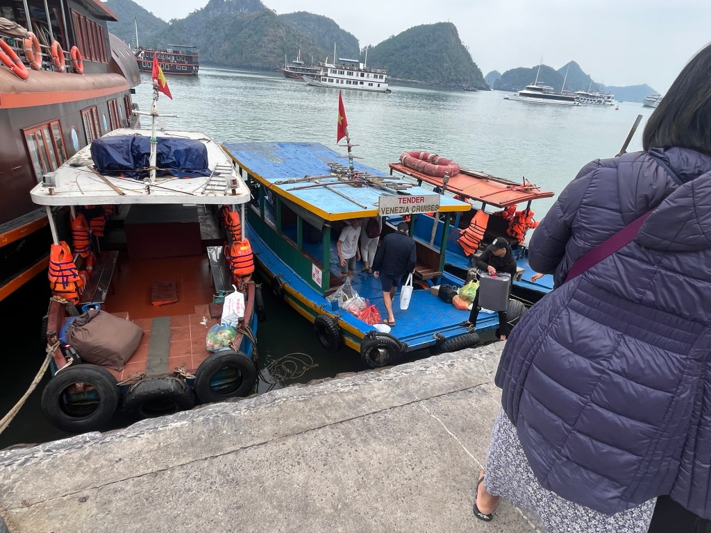 5 hrs, a ferry ride, and a tender ride later we’re entering the island of Cat Ba.
