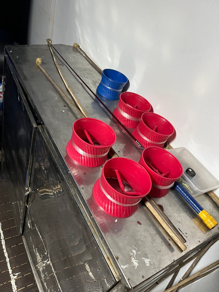 When we got back I was hoping to go squidding after washing up but the boat was shut down and when I went to return dishes to the kitchen I saw the entire crew sleeping in the main dining room. On the floors, makeshift beds assembled from chairs etc.