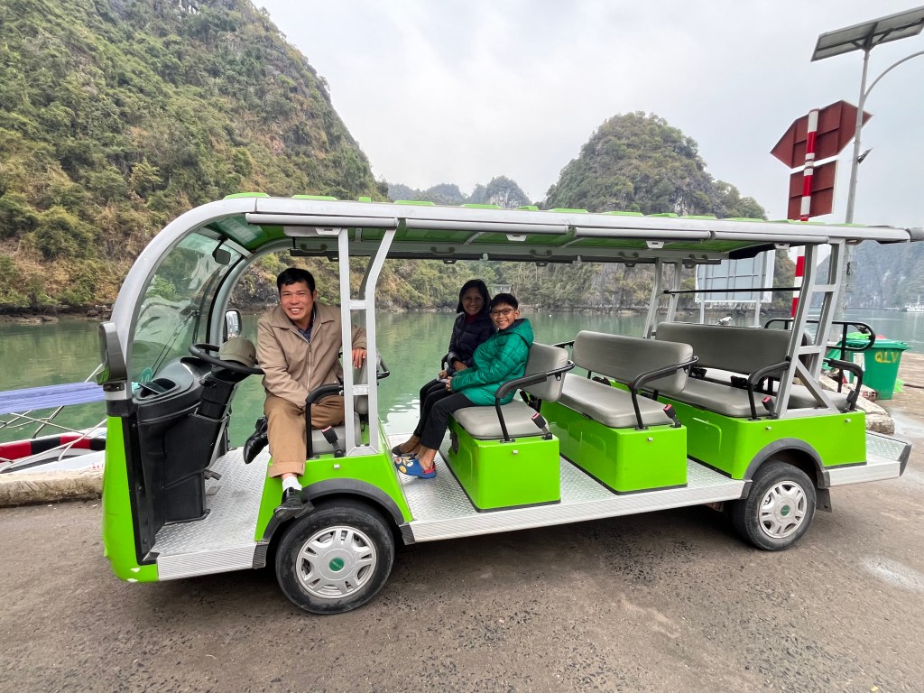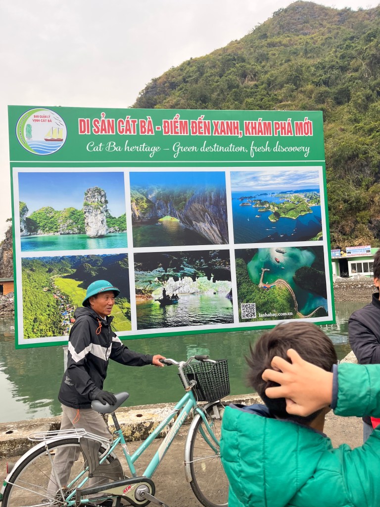 Next morning we spend half a day at a local town called Viet Hai village. At shore me and Pax ride bike while June and Hud take the electric cart.