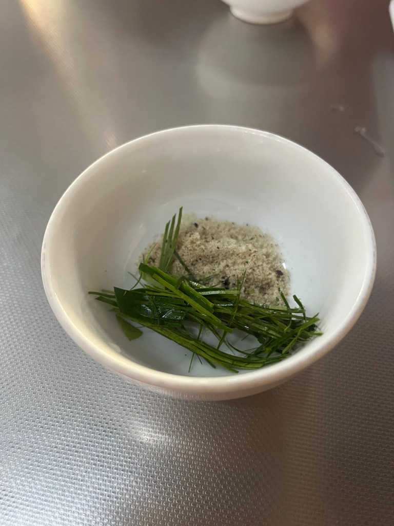 Usually these cooking classes we do end up costing more than if you were to just go out to a restaurant and buy similar food to what you’re making and this was no exception. Our class size was small-just the four of us and we got to learn lots from chef Guy “Gwee”. We really got to ask lots of questions and ended up getting detailed answers. This class did feel like a culinary class as we talked presentation and respecting technique.