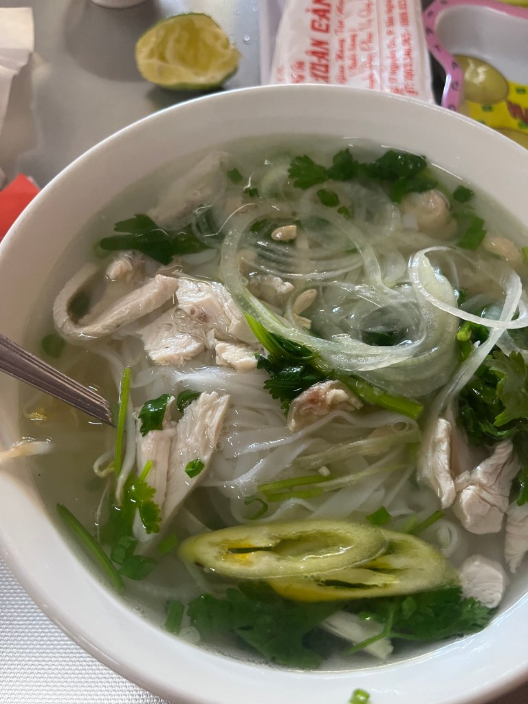 Couple things, the pho is chicken and instead of a side of veggies like we get in Hawaii there’s a side of seasoned salt and a bit of shredded lemon grass.