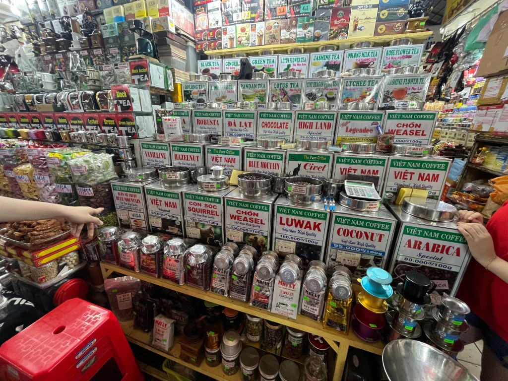 This is the Ben Thanh market. It was the first one of its kind on our trip. Major sales pressure and high prices but at least we got some interesting coffee here. Although it was expensive, it was the meeting place for many of our tours as it’s a landmark in the city.