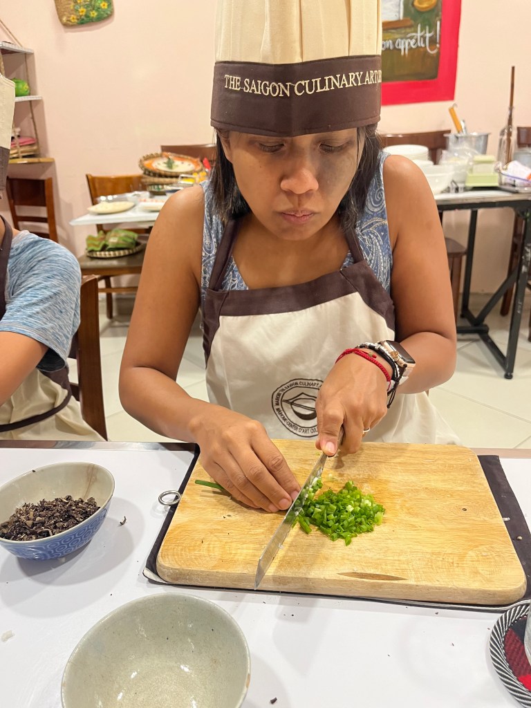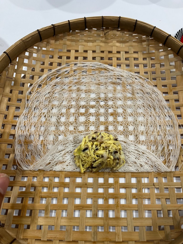 We made spring rolls using a nest like wrapper, steamed rolled cake stuffed with meat and veggies, chicken pho (not the noodles) and meat sticks along with learning to carve pineapple and carrot flowers.