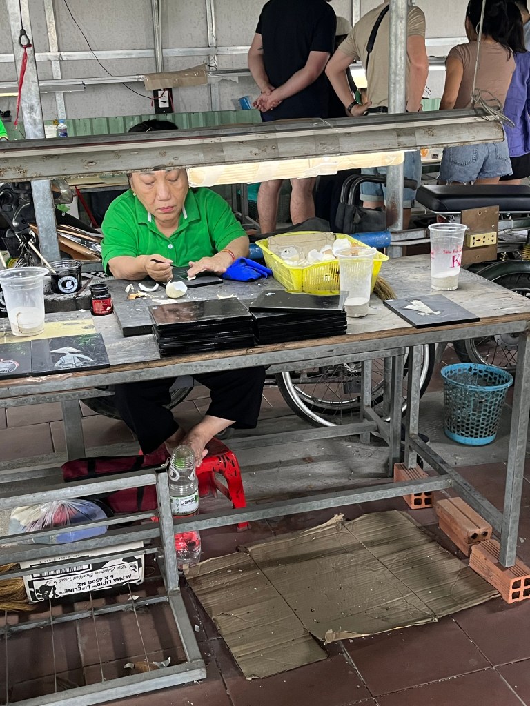 Usually there are a few tourist trap “museum” or “factory” visits worked into any tour itinerary. This place sells shell inlay art made of eggshells and sea shells. The difference with this place was that the artists making the art are handicapped and paid by the government. Many of them were affected through generational birth defects from Agent Orange administered by the US during the Vietnam War. Talk about guilt trip. It was kind of cool seeing the different stages of art but nothing looked like it belonged in my house.