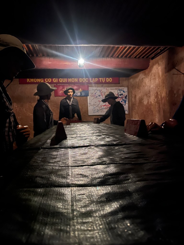 The Cu Chi area was chosen by the Viet Cong because of its sandy clay soil which could be more easily dug. It was straight up survival. The tunnels were dark and damp and lacked light and air.