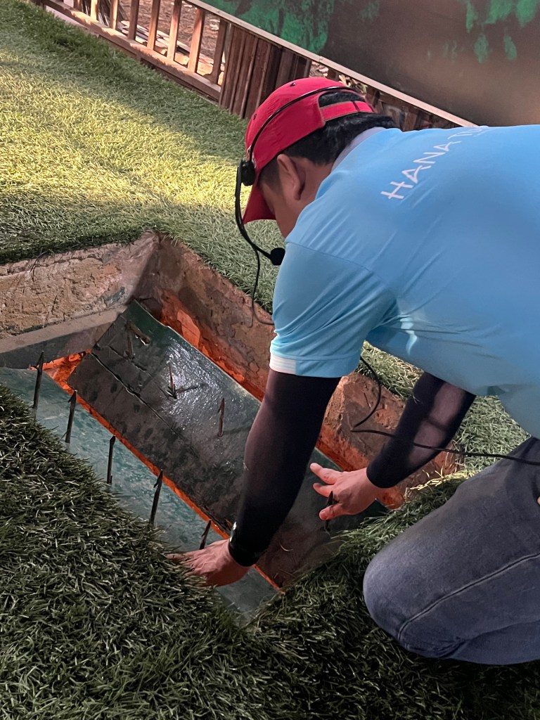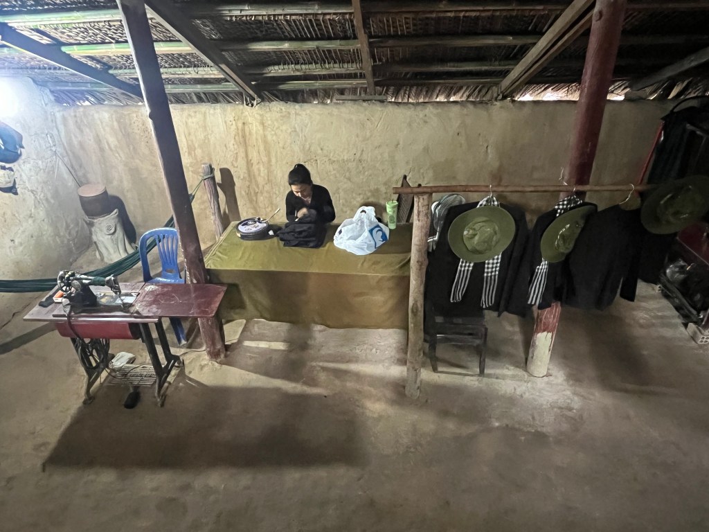 The tunnels in general go 3 layers deep and range between 3-8 meters below the surface to the different floor levels. Here’s a peep hole in a bunker. There are 4 holes on 4 sides to look out of. When Pax and I went inside I could see the lower legs of the tourists still above ground.