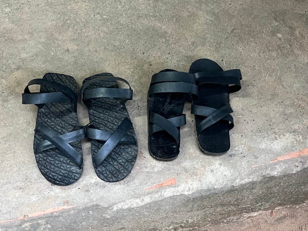 Water wells and even a place to get clothing and slippers made out of tire tread and inner tubes. The slipper guy would take 1.5 hours per pair and make 5 pairs per day. And the slippers were made “backward” so that it looked like soldiers were heading one way when they were actually going another.