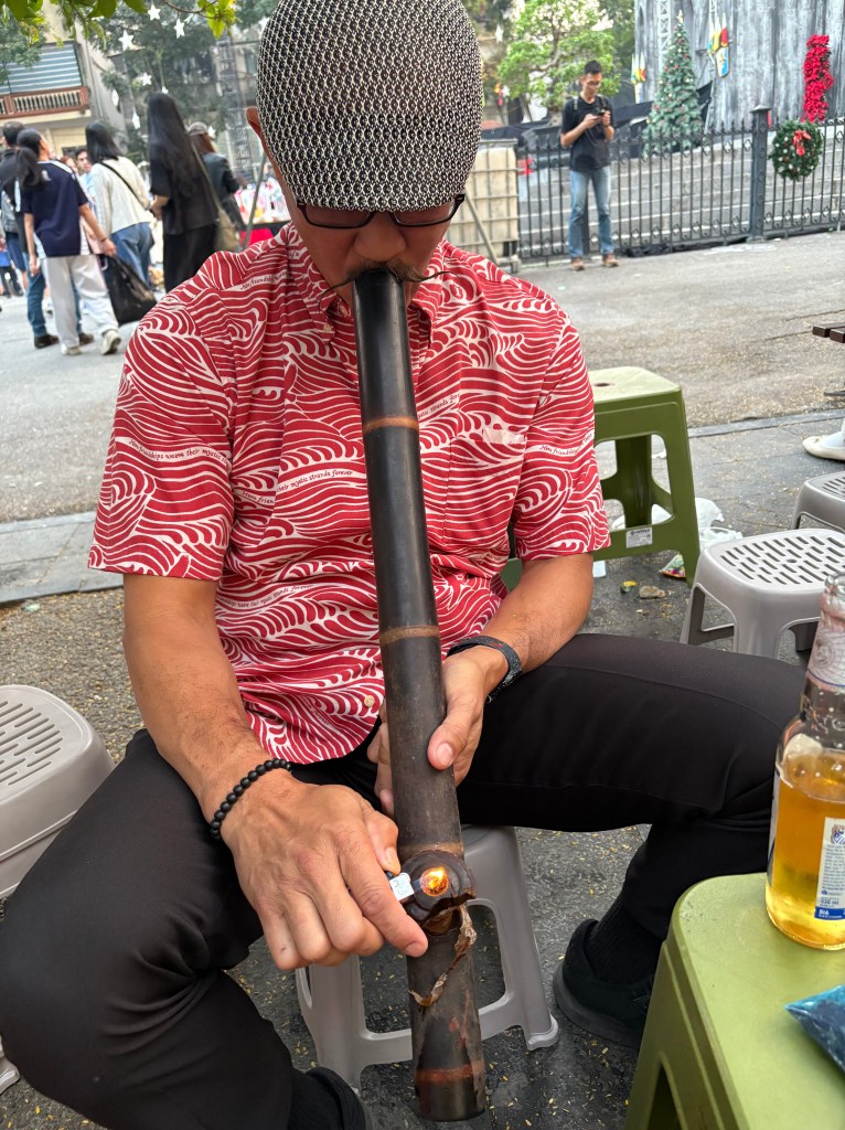 Then we hung out on the street for beer and a smoke of the thuốc lào. Restaurants and bars in Hanoi have these laying out. They’re free to use communally.
