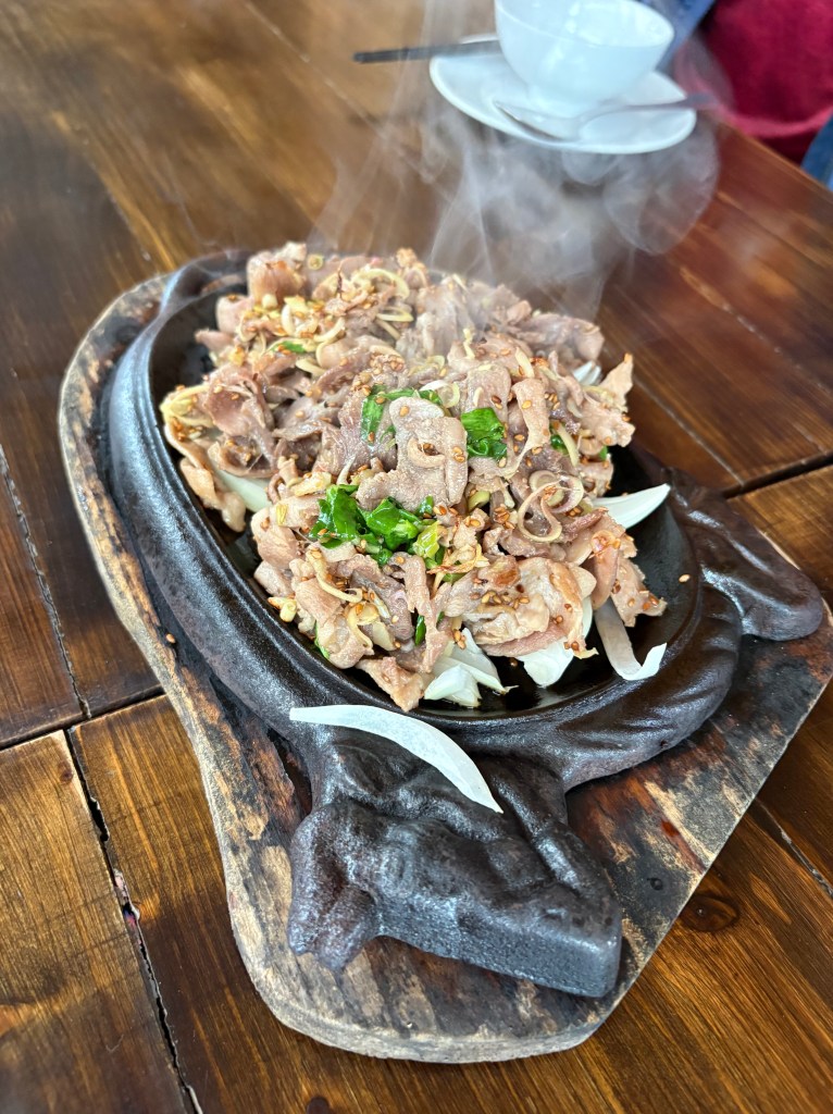 We stopped at a restaurant for coffee drinks, and we got a taste of home made rice liquor. A typical batch takes 7 plus days to make. This tasted around 30 percent alcohol I’d guess.