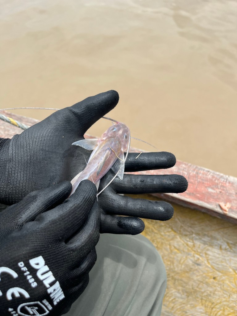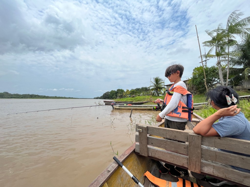 After our tributary visit, we made our way back onto the main waterway. At Peru’s Happy Village, we stopped to fish from the bank of the Amazon river.