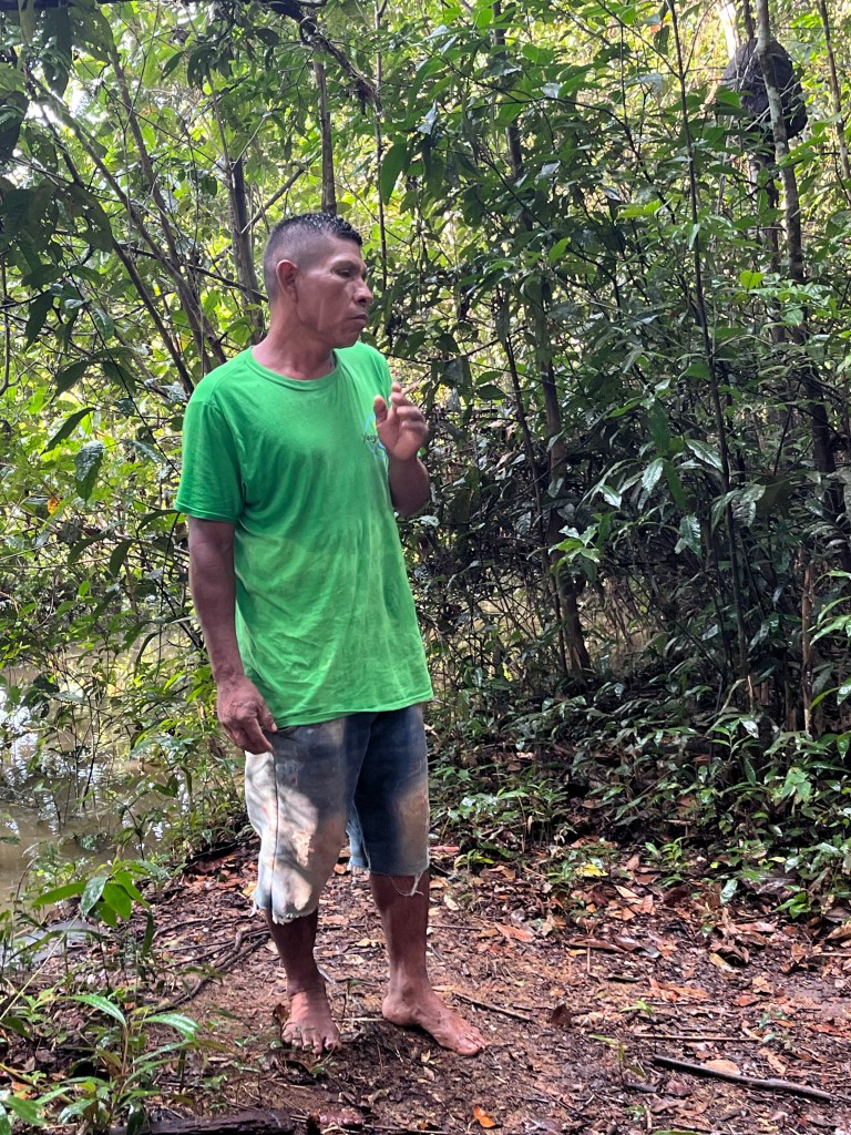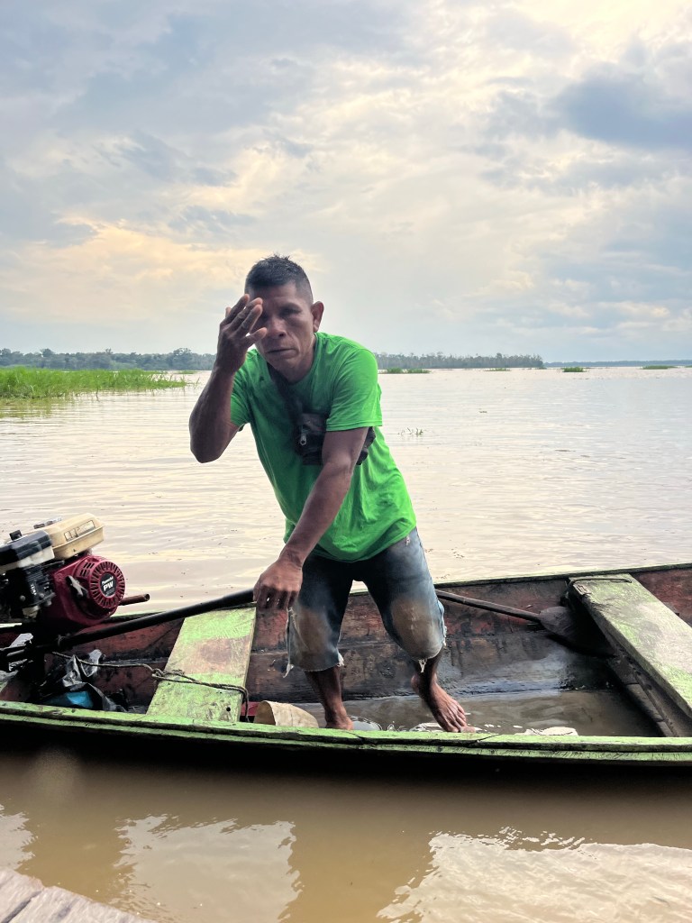 The shaman came to pick us up in his boat. I shook his hand and meant to tell him my name in Spanish but instead said “I love you, Marvin.” Oops at least I’m trying.