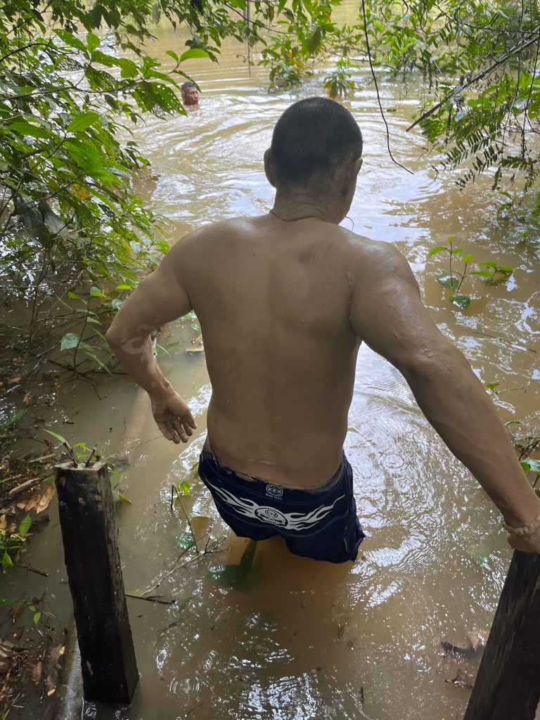 We sat for a few minutes taking about the ceremony while the mud dried. Mosquitoes tried to land on me but they ended up flying away instead. Then we jumped into the river for a swim with the water spirit and to rinse off.