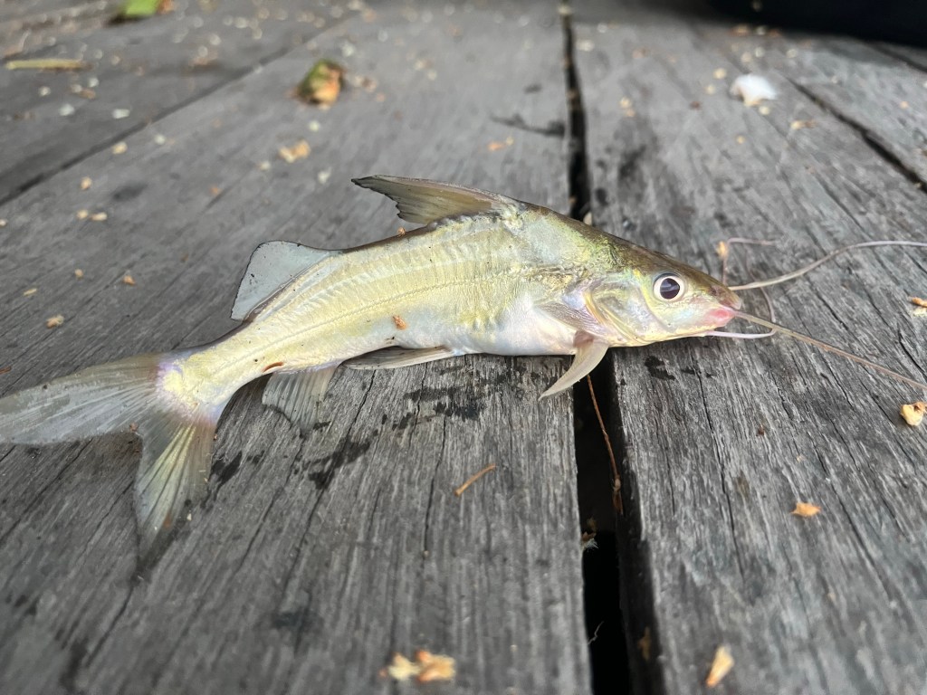 Back at the lodge I went fishing with Gloria at the pier. She caught another catfish. This one had a really hard side and top fin/spikes.